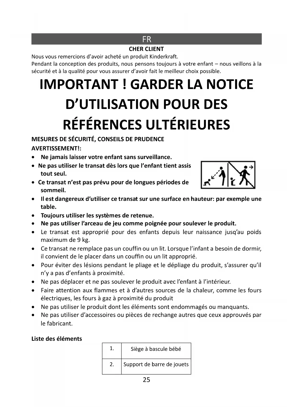 CHER CLIENT Nous vous remercions d’avoir acheté un produit Kinderkraft. Pendant la conception des produits, nous pensons toujours à votre enfant – nous veillons à la sécurité et à la qualité pour vous assurer d’avoir fait le meilleur choix possible.