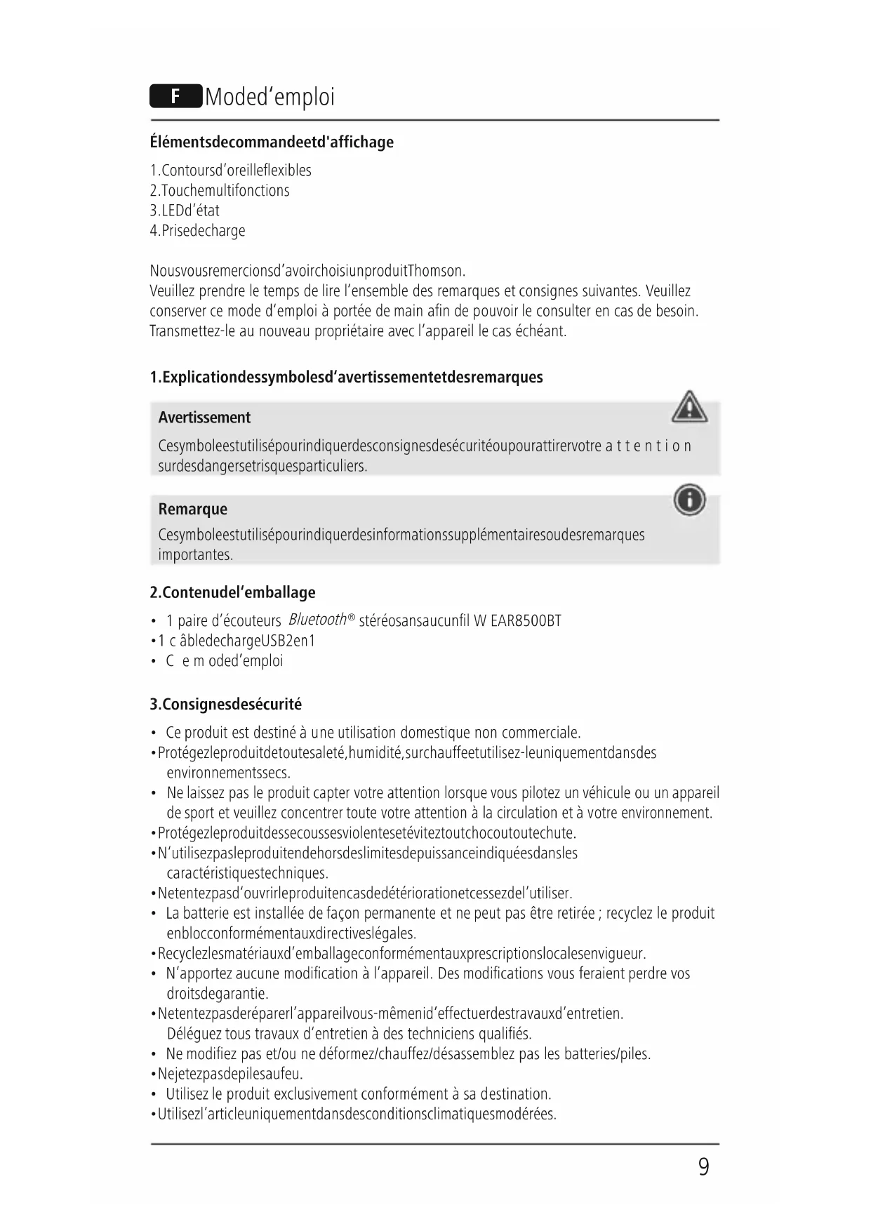 WEAR8500BT - Ecouteur THOMSON - Notice d'utilisation et mode d'emploi gratuit