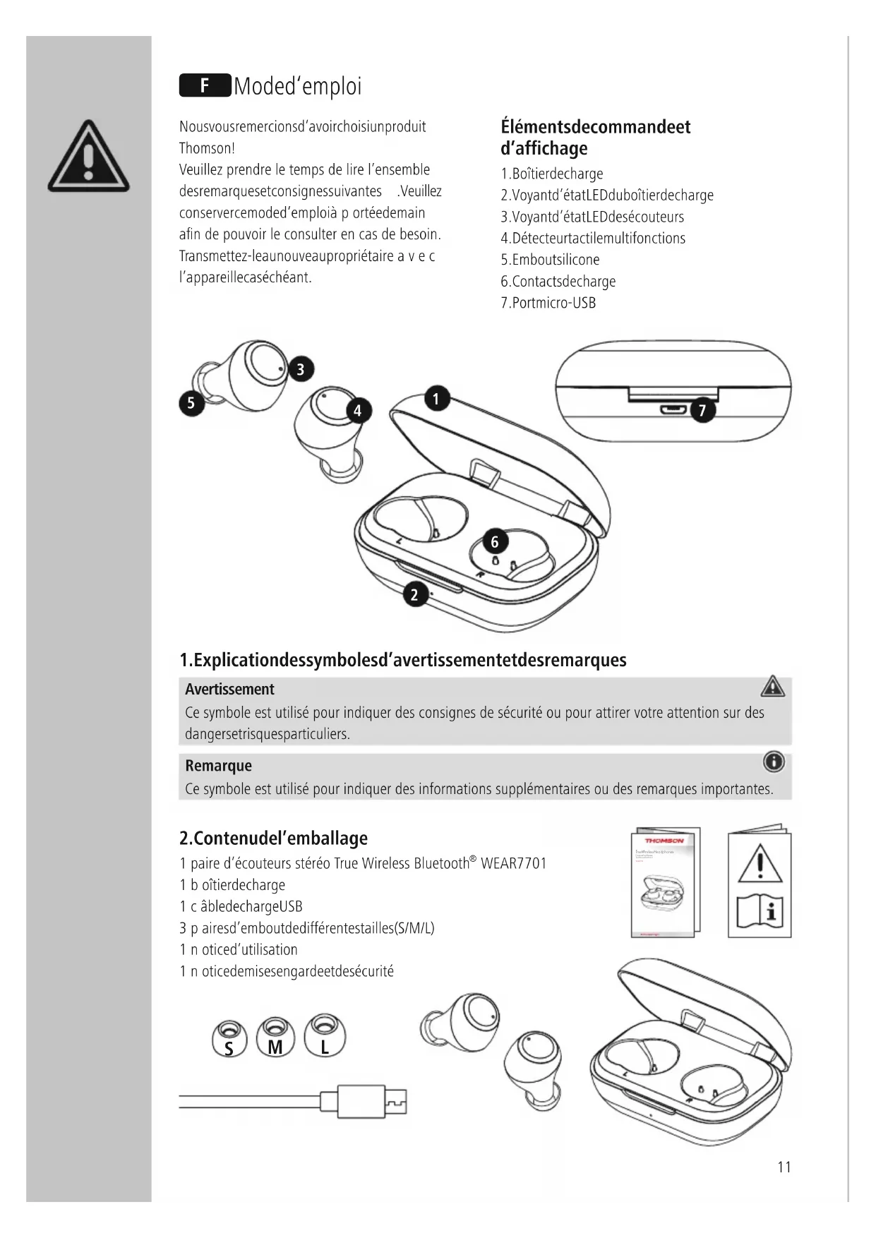 WEAR7701 - Ecouteur THOMSON - Notice d'utilisation et mode d'emploi gratuit