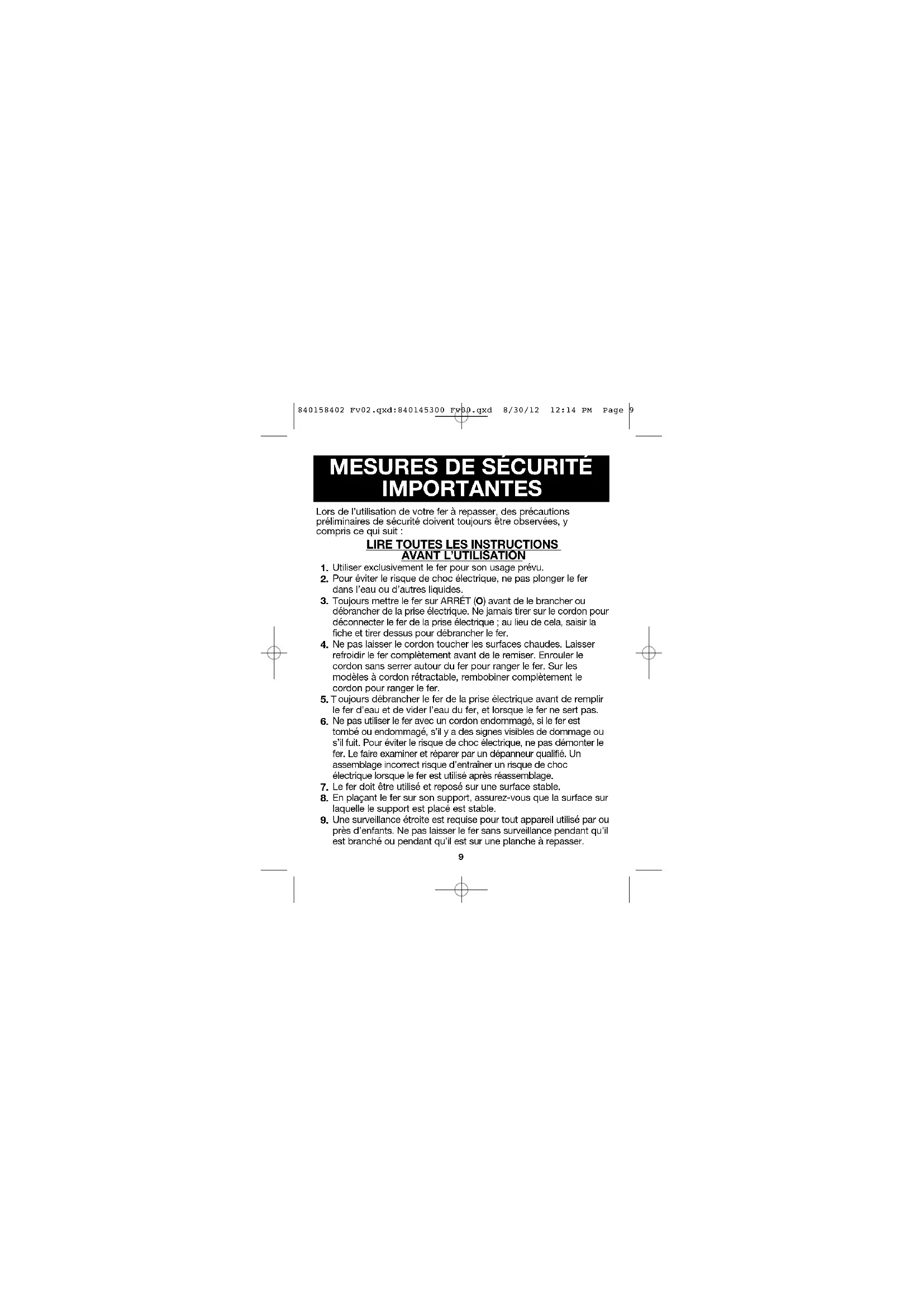 Une surveillance étroite est requise pour tout appareil utilisé par ou près d’enfants. Ne pas laisser le fer sans surveillance pendant qu’il est branché ou pendant qu’il est sur une planche à repasser.