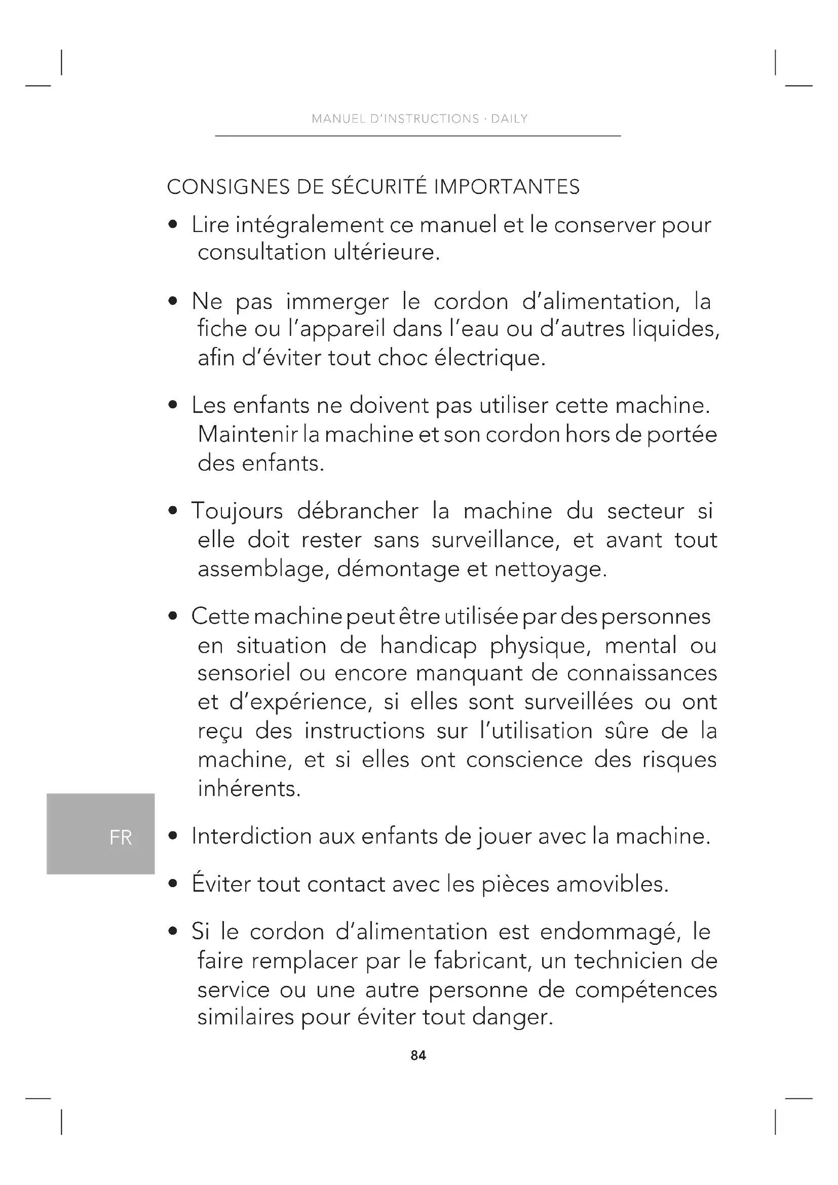 - Les enfants ne doivent pas utiliser cette machine. Maintenir la machine et son cordon hors de portée des enfants.