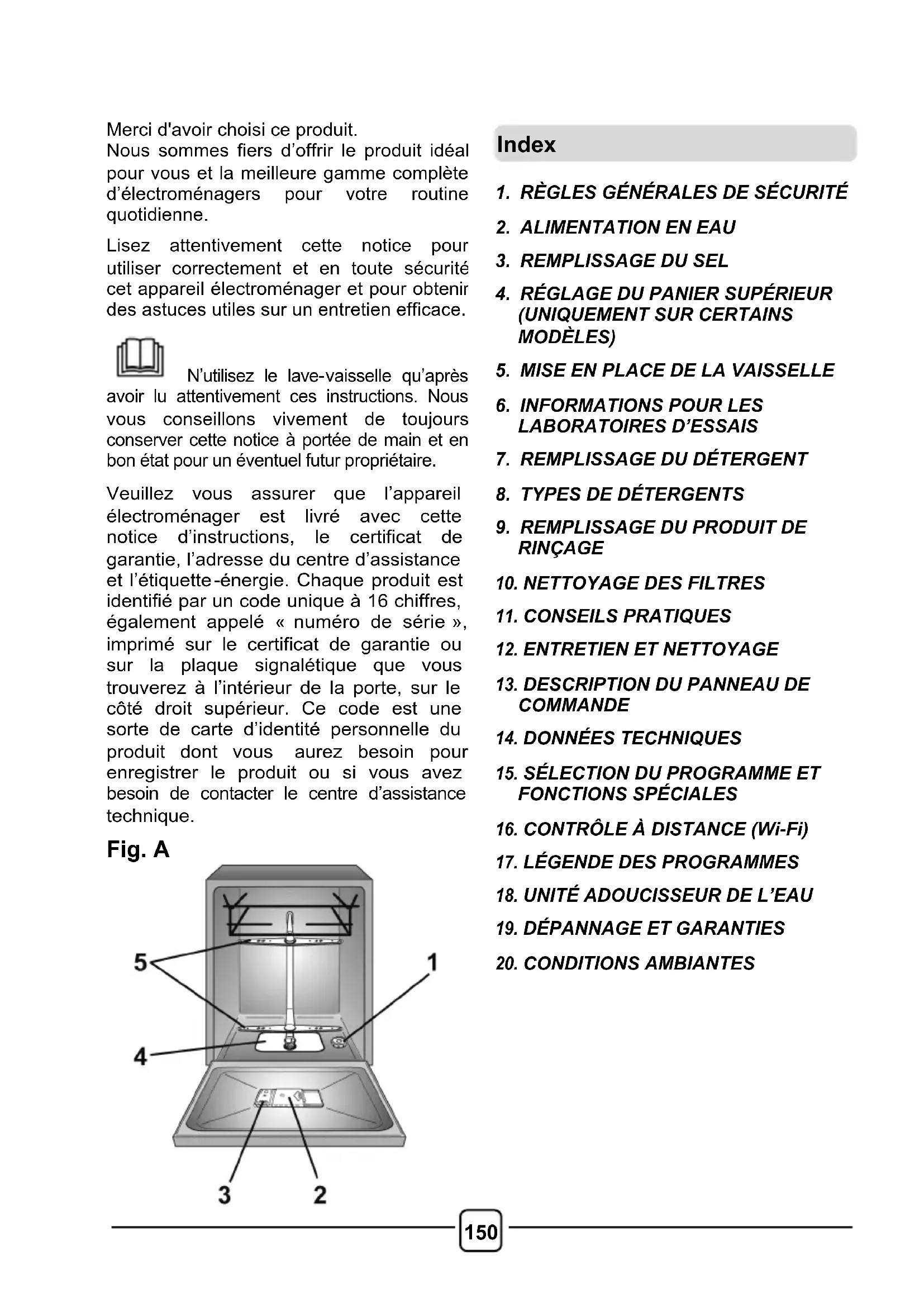 N’utilisez le lave- vaisselle qu’après avoir lu attentivement ces instructions. Nous vous conseillons vivement de toujours conserver cette notice à portée de main et en bon état pour un éventuel futur p ropriétaire.