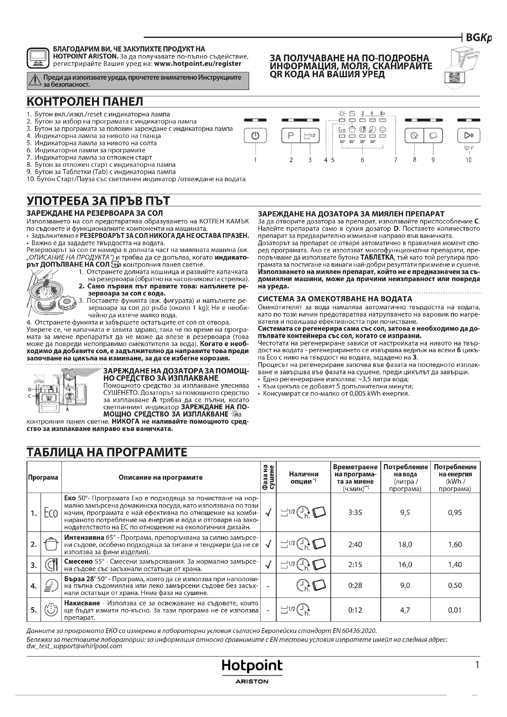 H2F HL626 X - Lave-vaisselle HOTPOINT - Notice d'utilisation et mode d'emploi gratuit