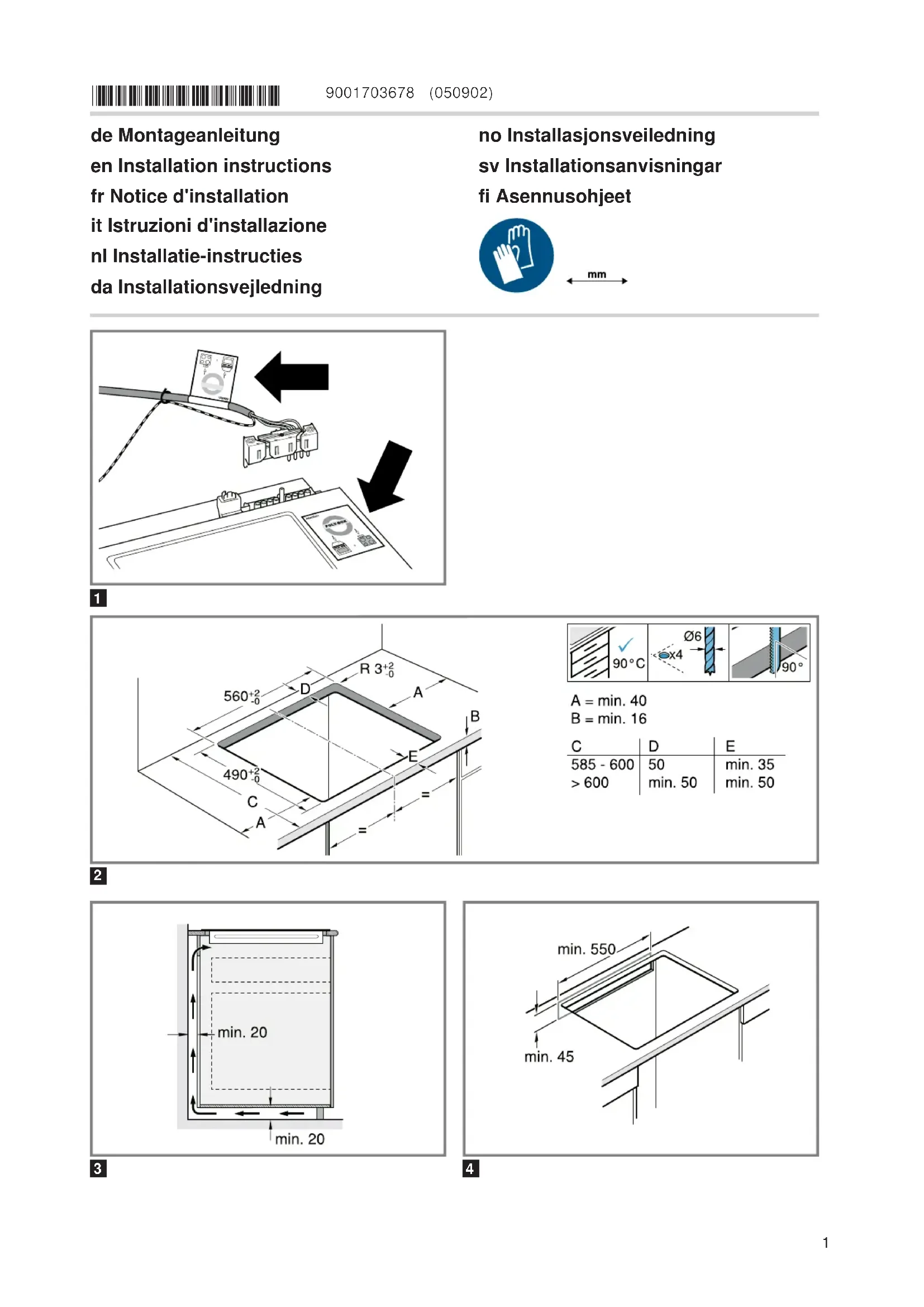 de montage. ‒ Veiller à ce que l'angle du chant de la découpe par rapport au plan de travail soit de 90°.
