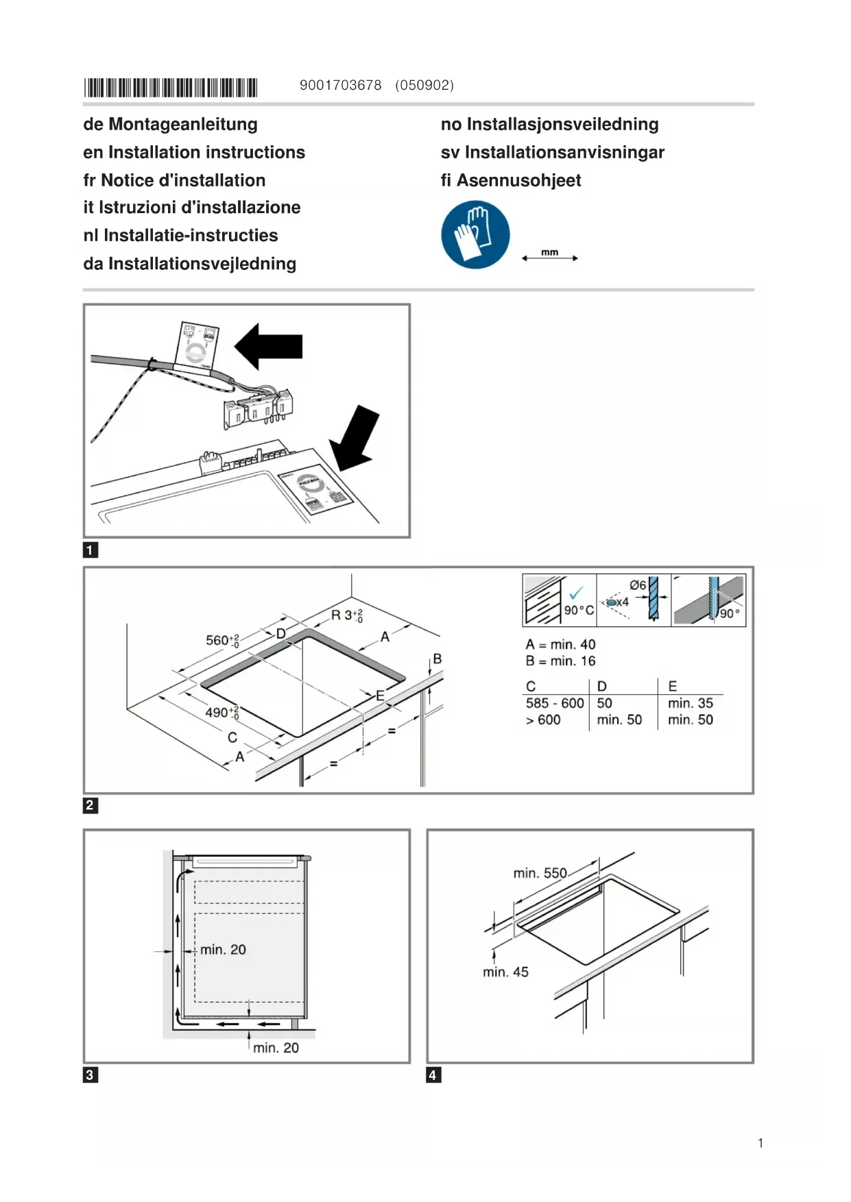 Insérer la table de cuisson dans la découpe du plan de travail avec une profondeur de 500mm