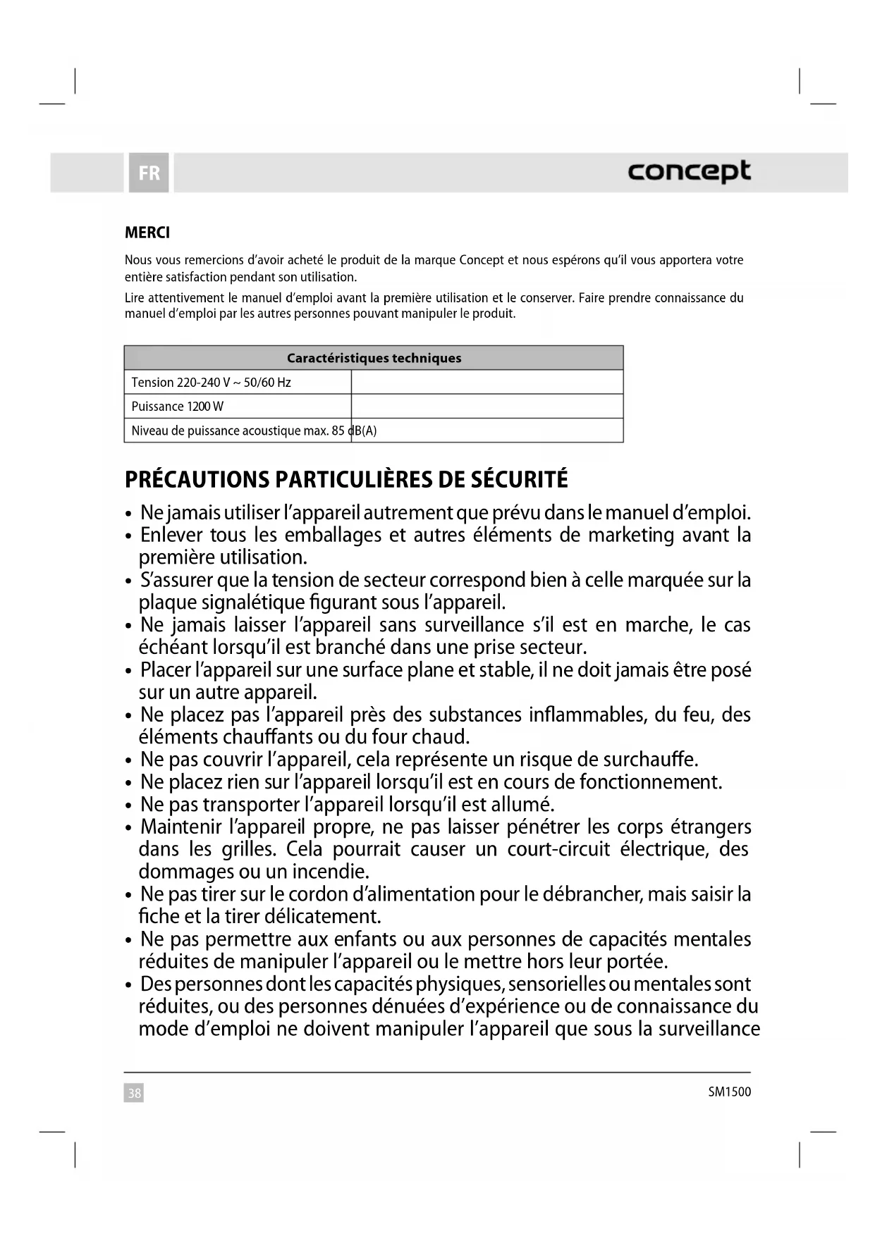 MODE D'EMPLOI SM1500 Concept