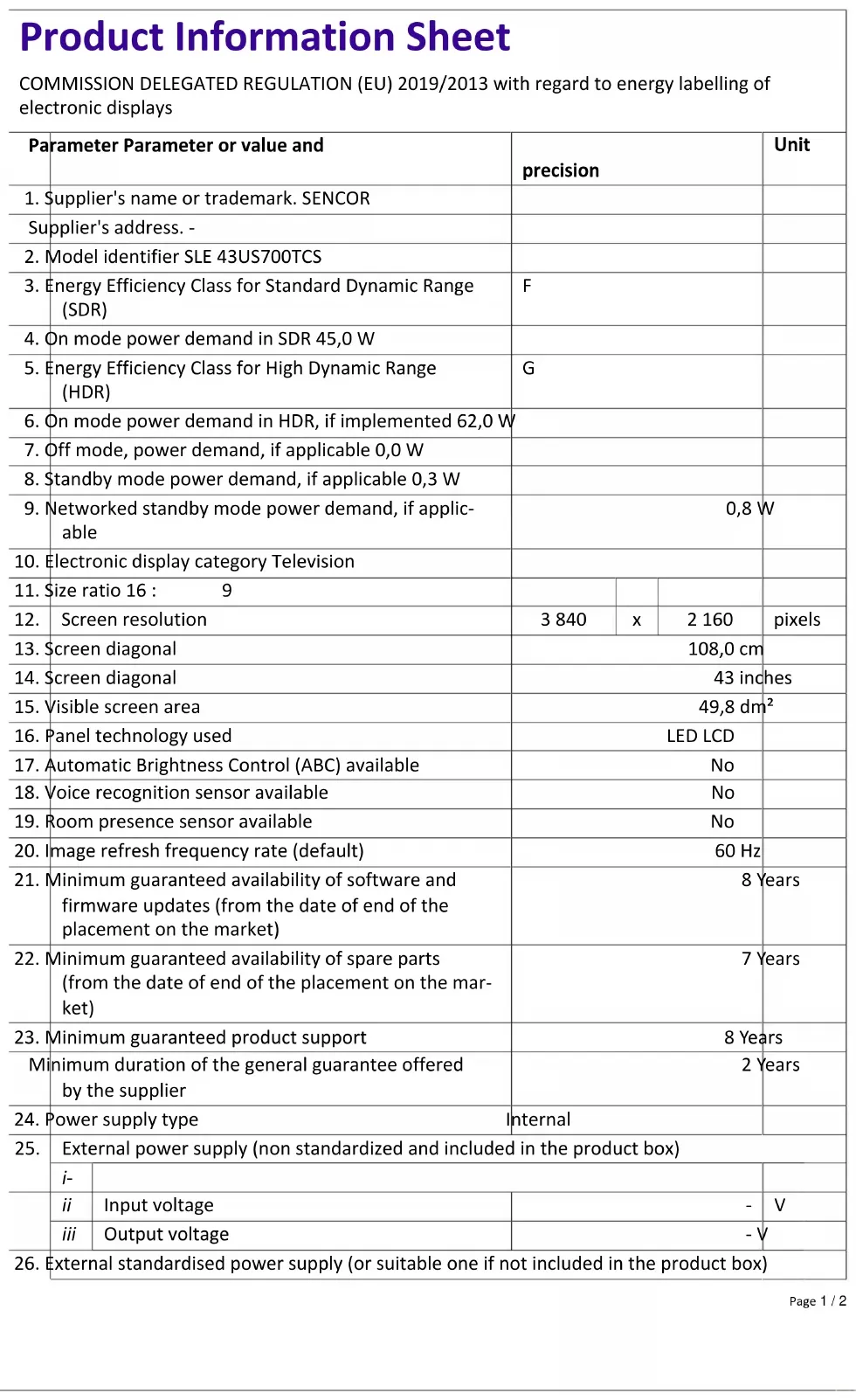 Retrouvez gratuitement la notice de l'appareil SLE 43US700TCS SENCOR au format PDF.