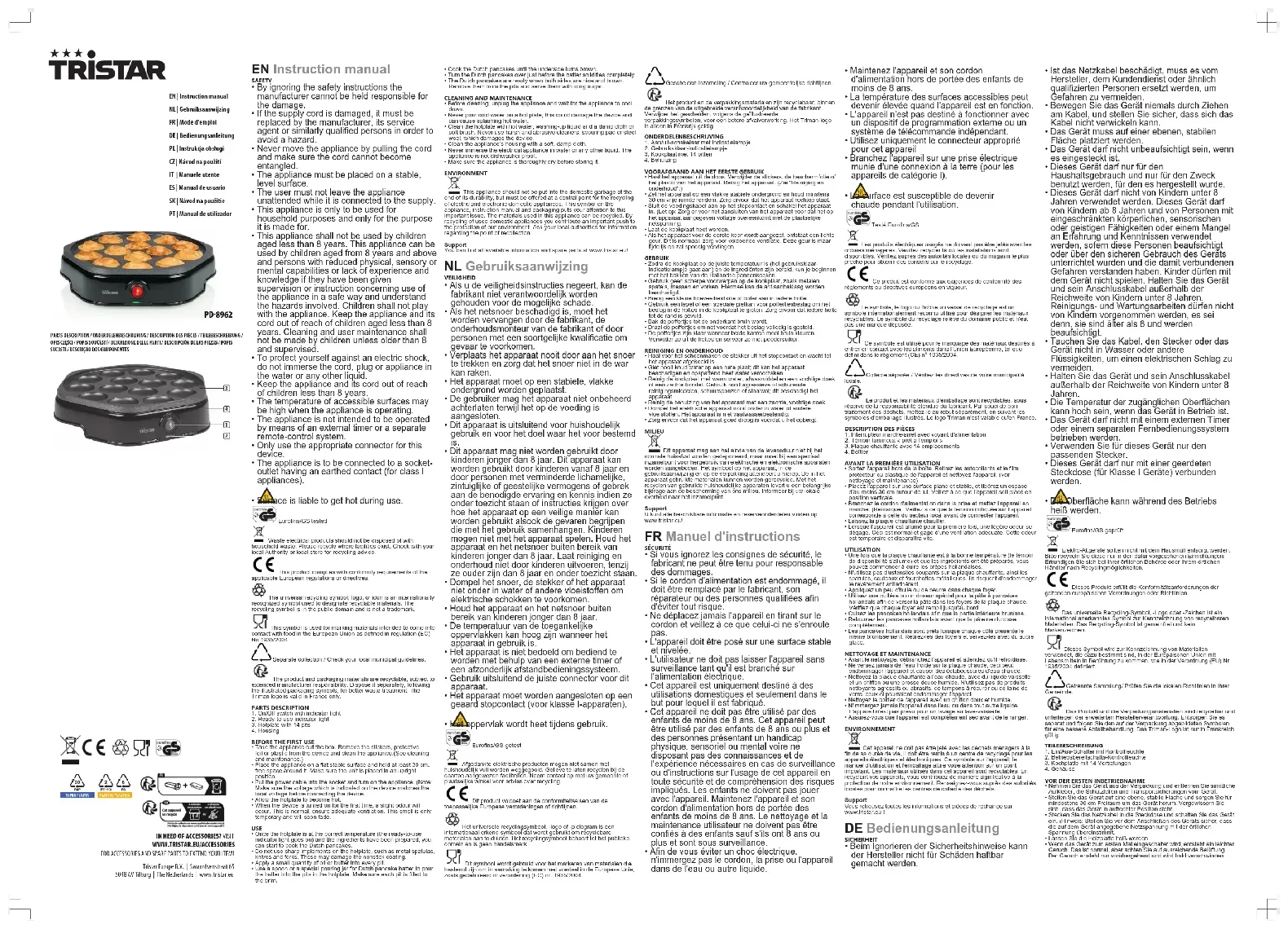 PD-8962 - Crépière TRISTAR - Notice d'utilisation et mode d'emploi gratuit