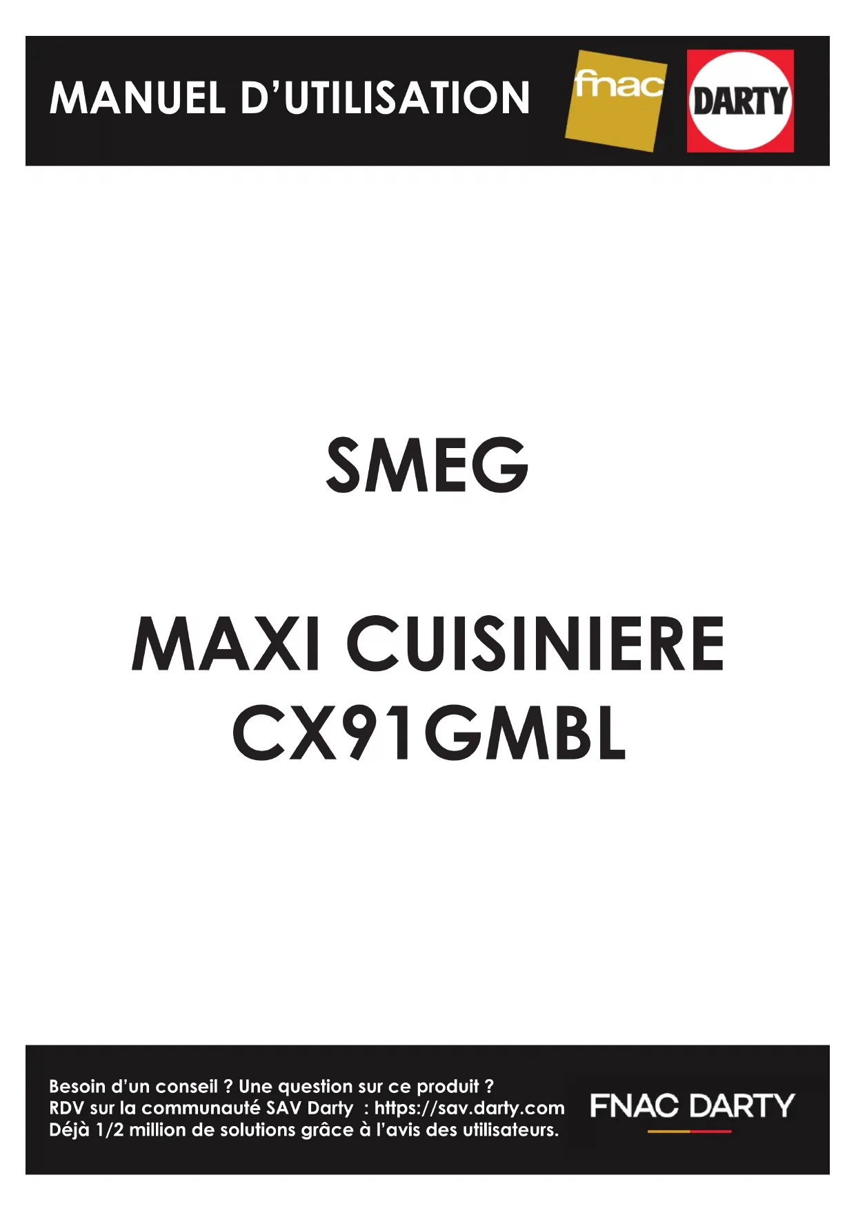 Besoin d’un conseil ? Une question sur ce produit ? RDV sur la communauté SAV Darty : https://sav.darty.com Déjà 1/2 million de solutions grâce à l’avis des utilisateurs. SMEG MAXI CUISINIERE CX91GMBL