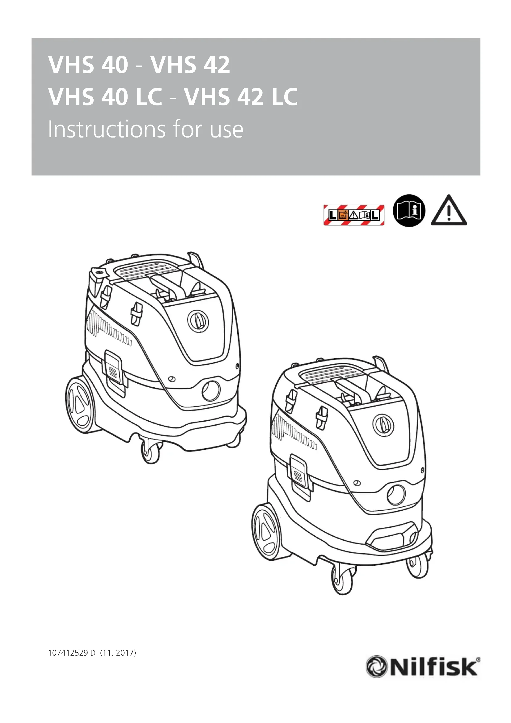 Retrouvez gratuitement la notice de l'appareil VHS 40 NILFISK au format PDF.