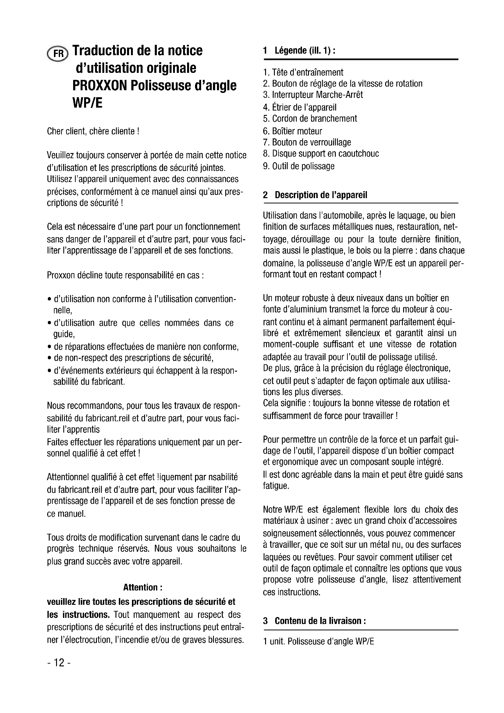 MODE D'EMPLOI WP/E PROXXON