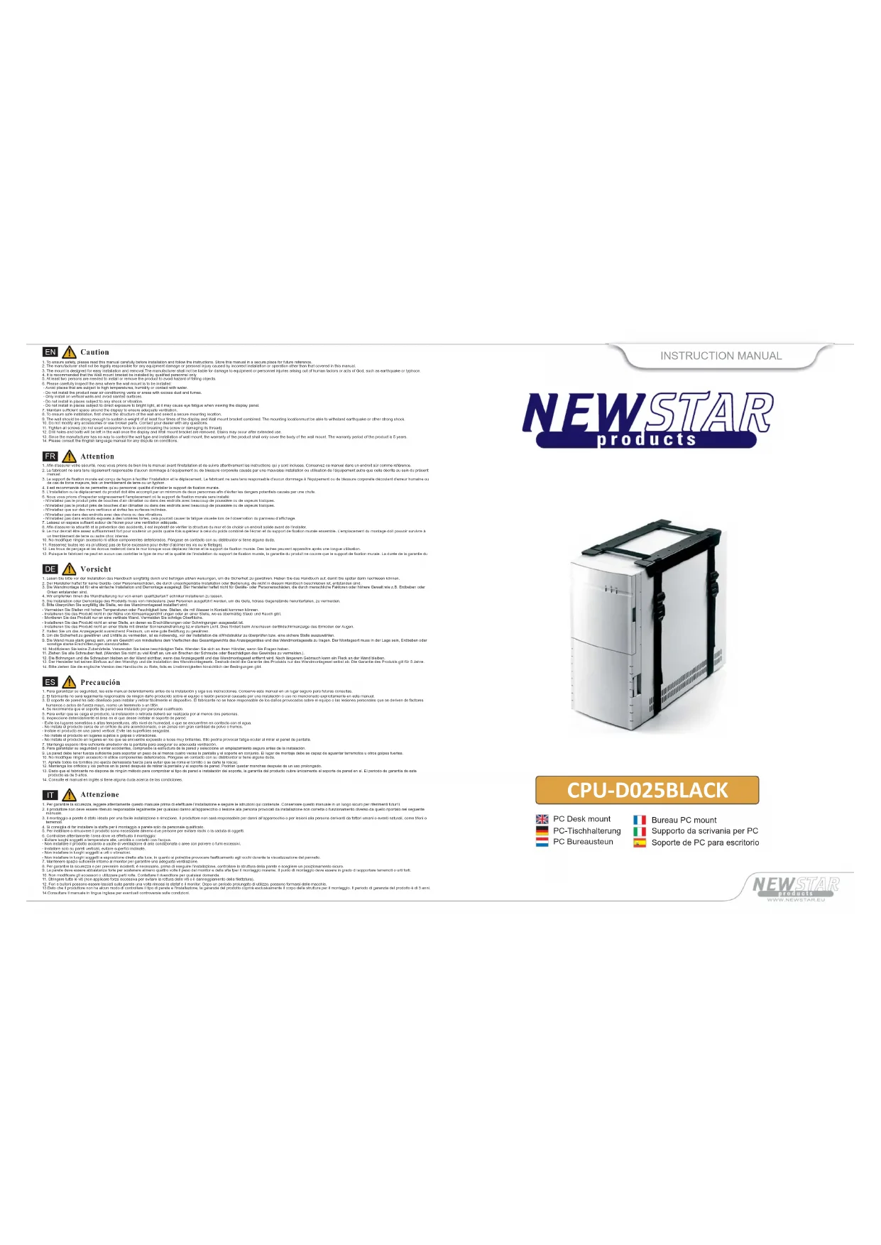 Retrouvez gratuitement la notice de l'appareil CPU-D025BLACK Newstar au format PDF.