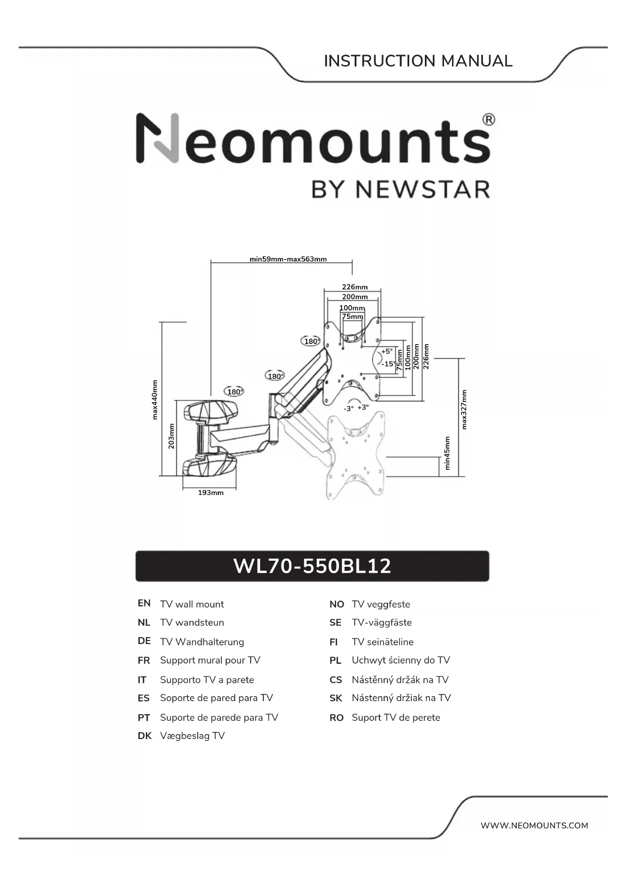 WL70 550BL12 - Support mural Newstar - Notice d'utilisation et mode d'emploi gratuit