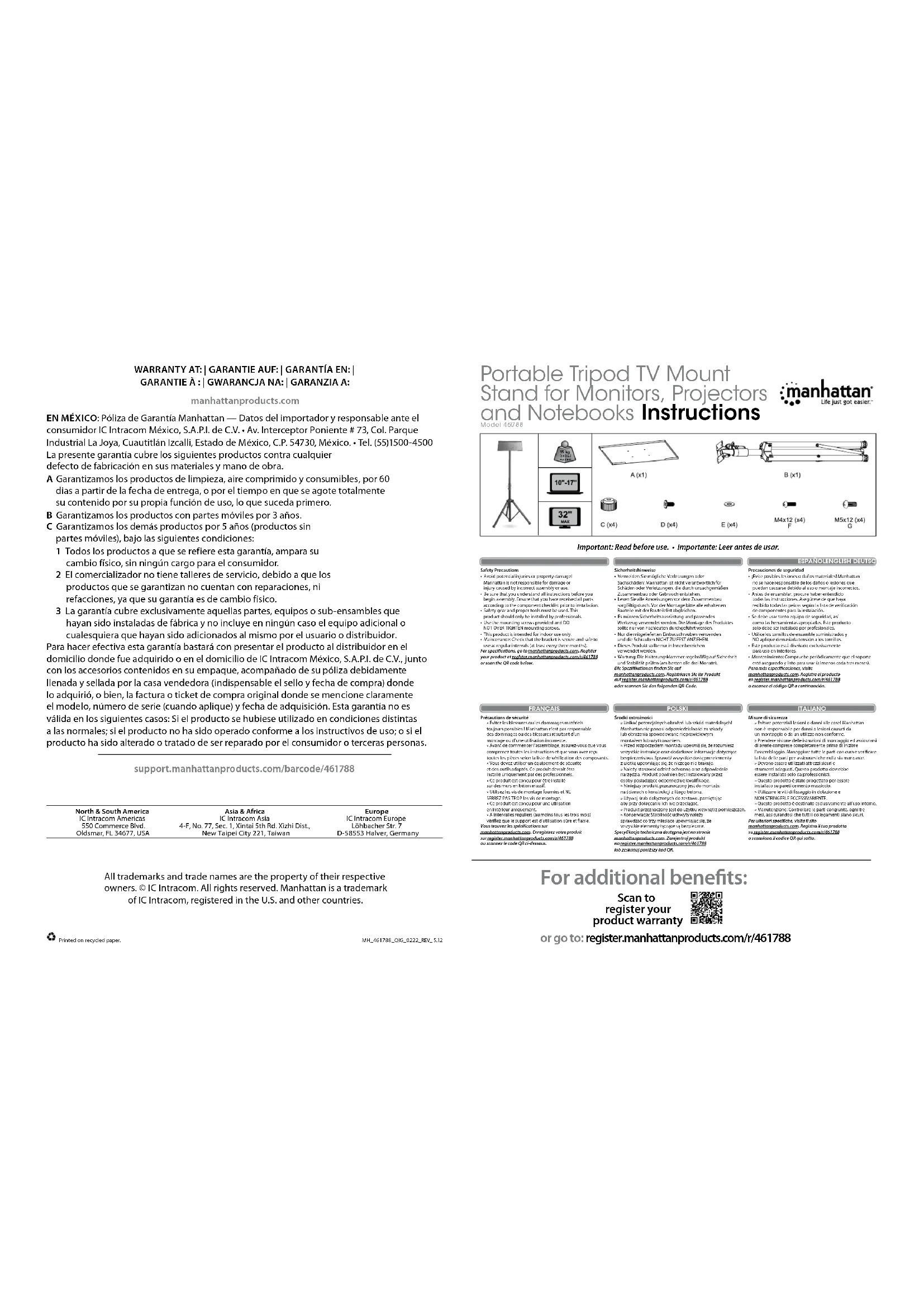 461788 - Trépied MANHATTAN - Notice d'utilisation et mode d'emploi gratuit