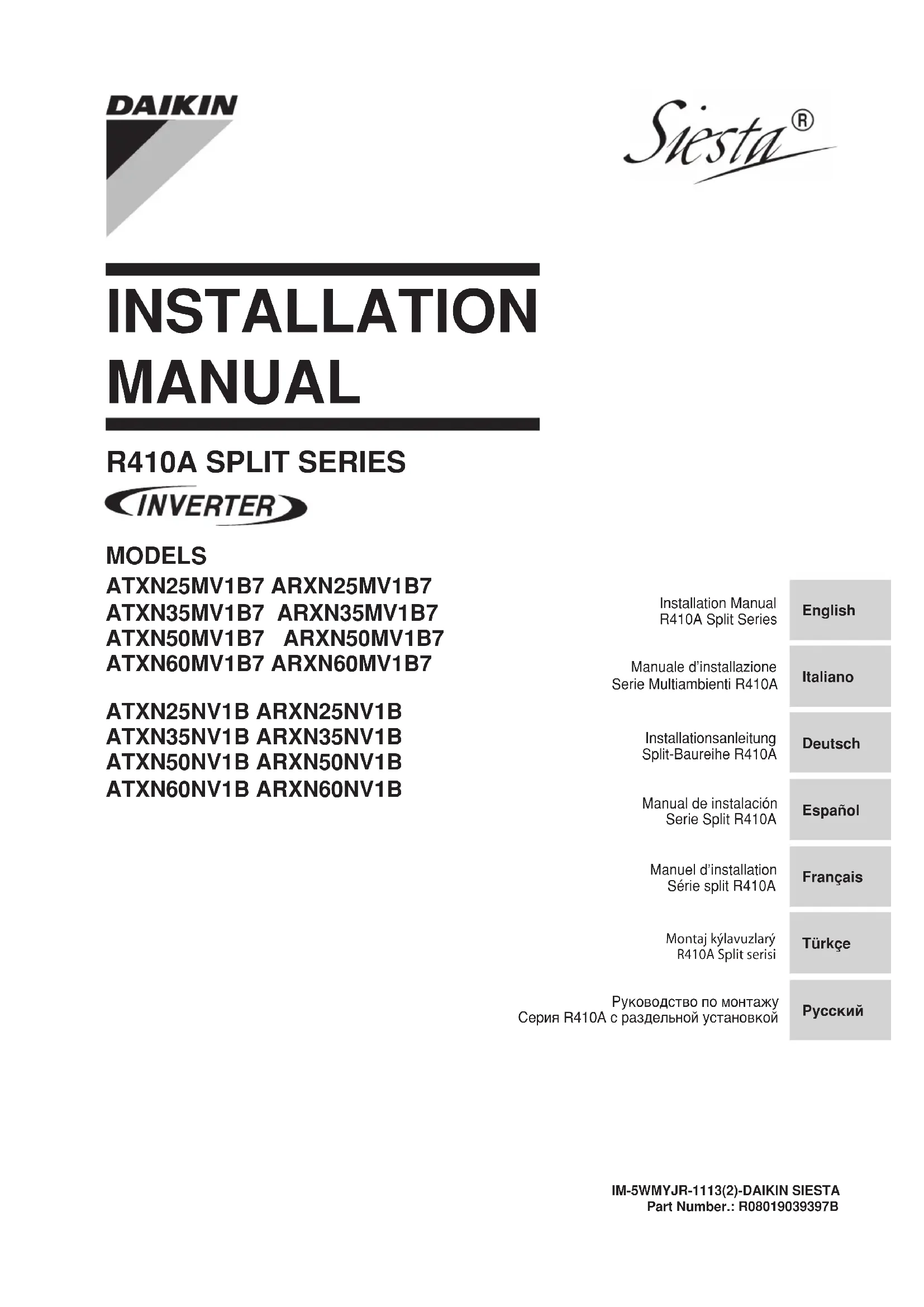 Retrouvez gratuitement la notice de l'appareil ARXN25NV1B DAIKIN au format PDF.