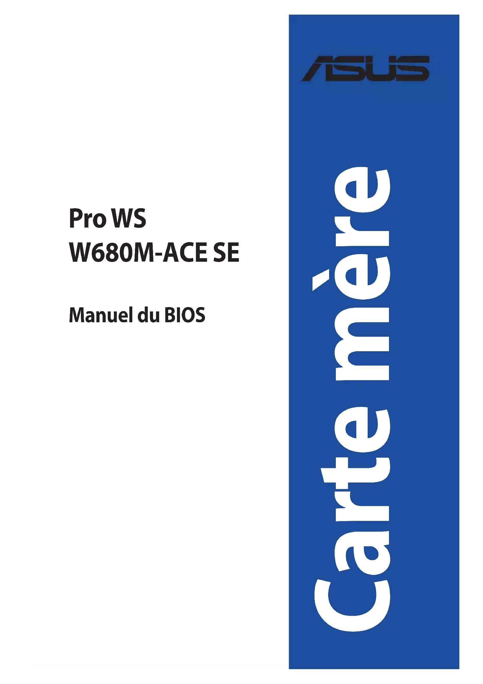 Manuel du BIOS Carte mèreF23139 Troisième Édition Décembre 2023 Copyright © 2023 ASUSTeK COMPUTER INC. Tous droits réservés. Aucun extrait de ce manuel, incluant les produits et logiciels qui y sont décrits, ne peut être reproduit, transmis, transcrit, stocké dans un système de restitution, ou traduit dans quelque langue que ce soit sous quelque forme ou quelque moyen que ce soit, à l'exception de la documentation conservée par l'acheteur dans un but de sauvegarde, sans la permission écrite expresse de ASUSTeK COMPUTER INC. (“ASUS”). La garantie sur le produit ou le service ne sera pas prolongée si (1) le produit est réparé, modifié ou altéré, à moins que cette réparation, modification ou altération ne soit autorisée par écrit par ASUS ; ou (2) si le numéro de série du produit est dégradé ou manquant. ASUS fournit ce manuel "en l'état" sans garantie d'aucune sorte, explicite ou implicite, y compris, mais non limité aux garanties implicites ou aux conditions de commerciabilité ou d'adéquation à un but particulier. En aucun cas ASUS, ses directeurs, ses cadres, ses employés ou ses agents ne peuvent être tenus responsables des dégâts indirects, spéciaux, accidentels ou consécutifs (y compris les dégâts pour manque à gagner, pertes de profits, perte de jouissance ou de données, interruption professionnelle ou assimilé), même si ASUS a été prévenu de la possibilité de tels dégâts découlant de tout défaut ou erreur dans le présent manuel ou produit. Les spécifications et les informations contenues dans ce manuel sont fournies à titre indicatif seulement et sont sujettes à des modifications sans préavis, et ne doivent pas être interprétées comme un engagement de la part d'ASUS. ASUS n'est en aucun cas responsable d'éventuelles erreurs ou inexactitudes présentes dans ce manuel, y compris les produits et les logiciels qui y sont décrits. Les noms des produits et des sociétés qui apparaissent dans le présent manuel peuvent être, ou non, des marques commerciales déposées, ou sujets à copyrights pour leurs sociétés respectives, et ne sont utilisés qu'à des fins d'identification ou d'explication, et au seul bénéfice des propriétaires, sans volonté d'infraction.Manuel du BIOS de la série Pro WS W680M-ACE SE