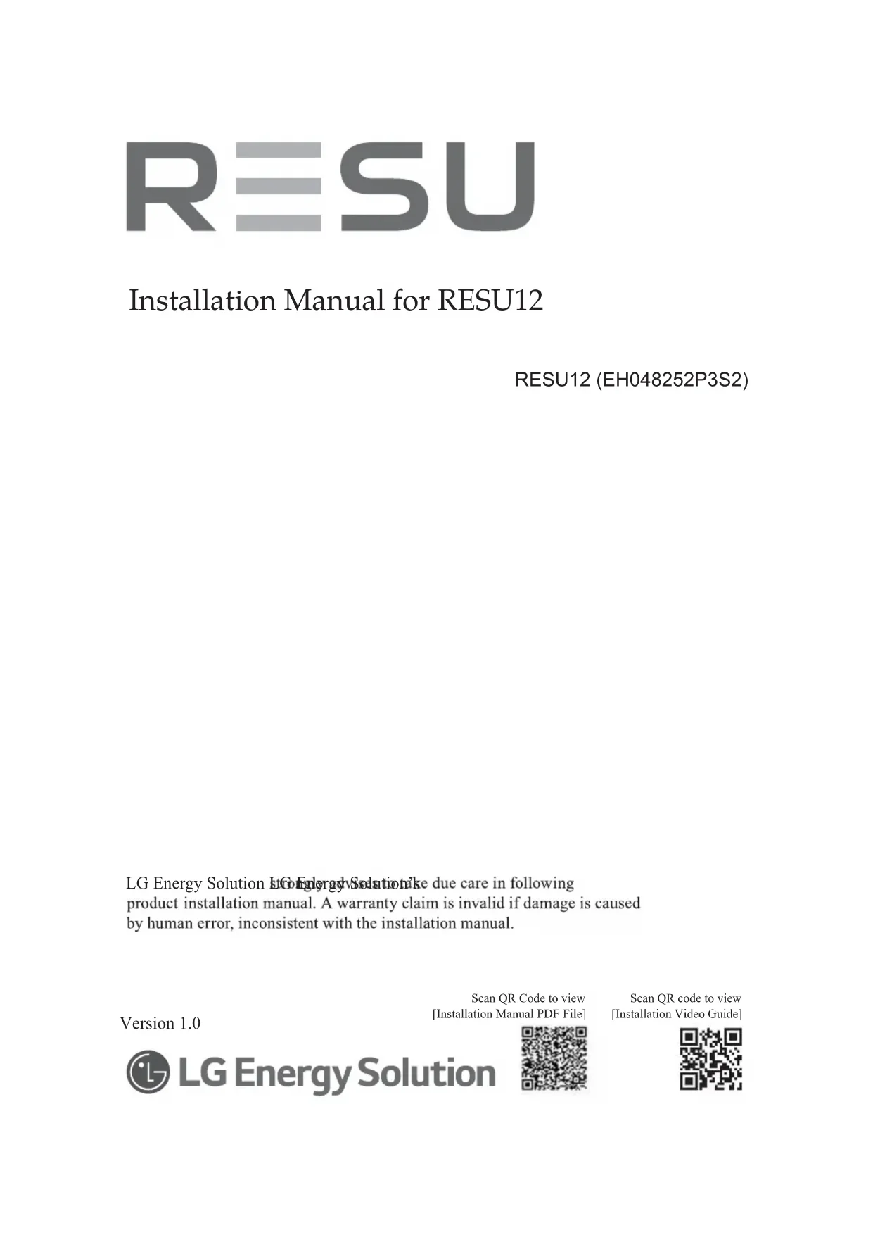 RESU12 - Batterie LG - Notice d'utilisation et mode d'emploi gratuit