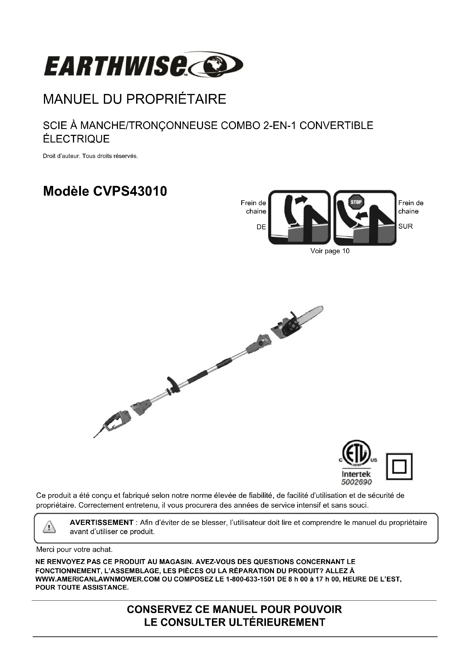 Retrouvez gratuitement la notice de l'appareil CVPS43010 Earthwise au format PDF.