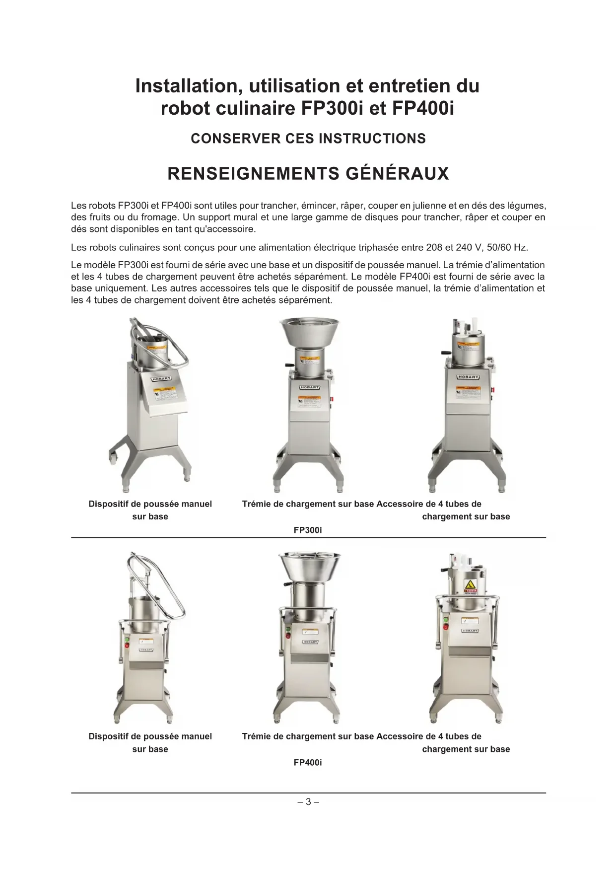 FP400i - Robot ménager Hobart - Notice d'utilisation et mode d'emploi gratuit