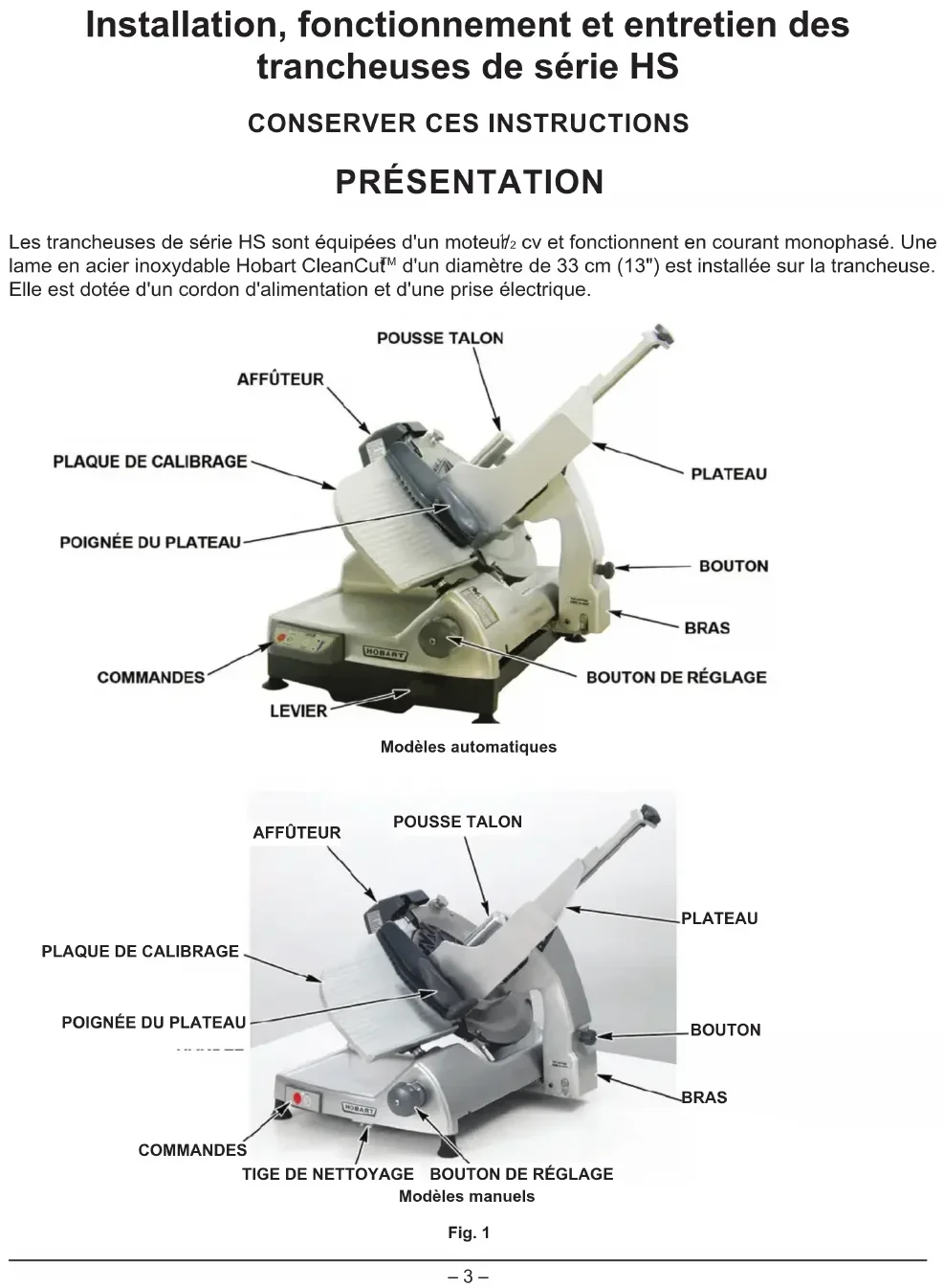 HS7N - Trancheuse Hobart - Notice d'utilisation et mode d'emploi gratuit
