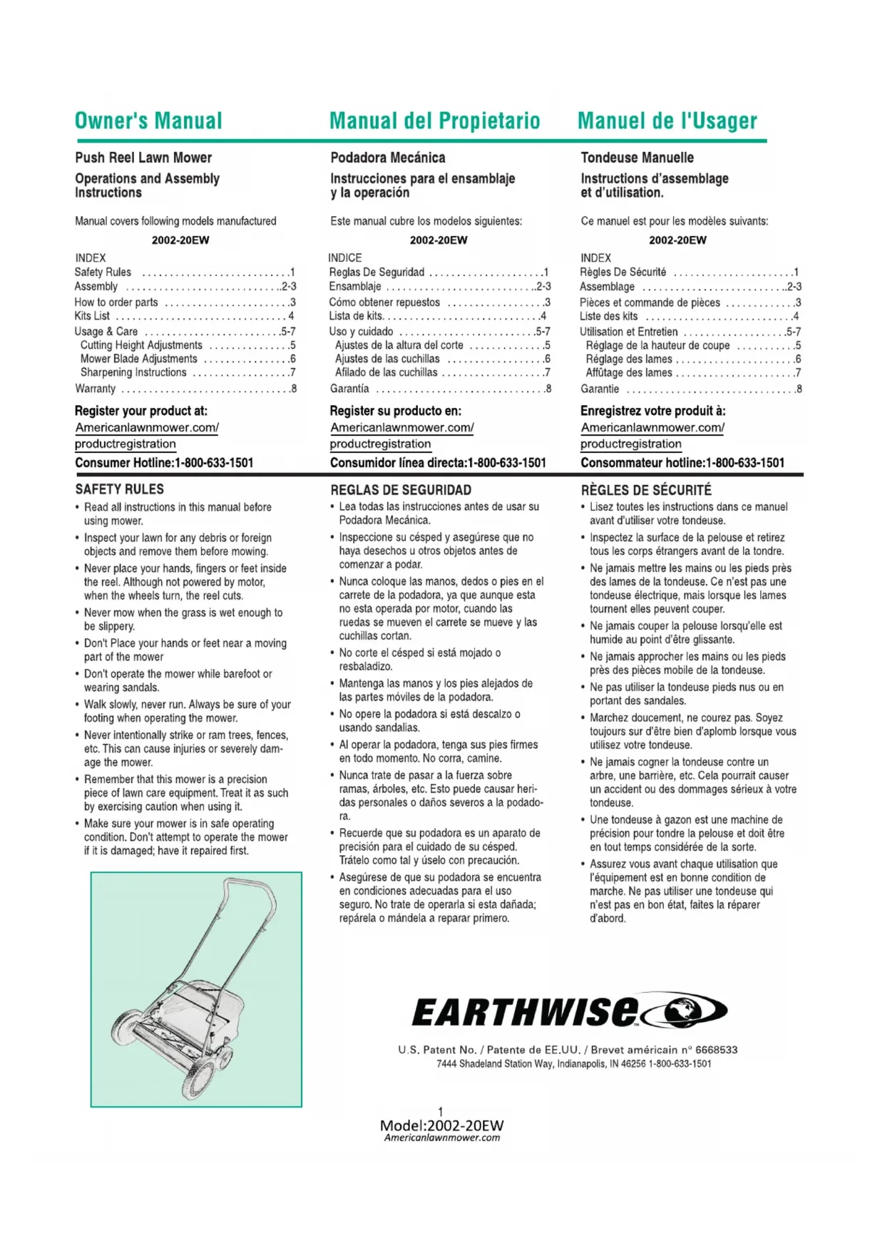 Retrouvez gratuitement la notice de l'appareil 2002-20EW Earthwise au format PDF.