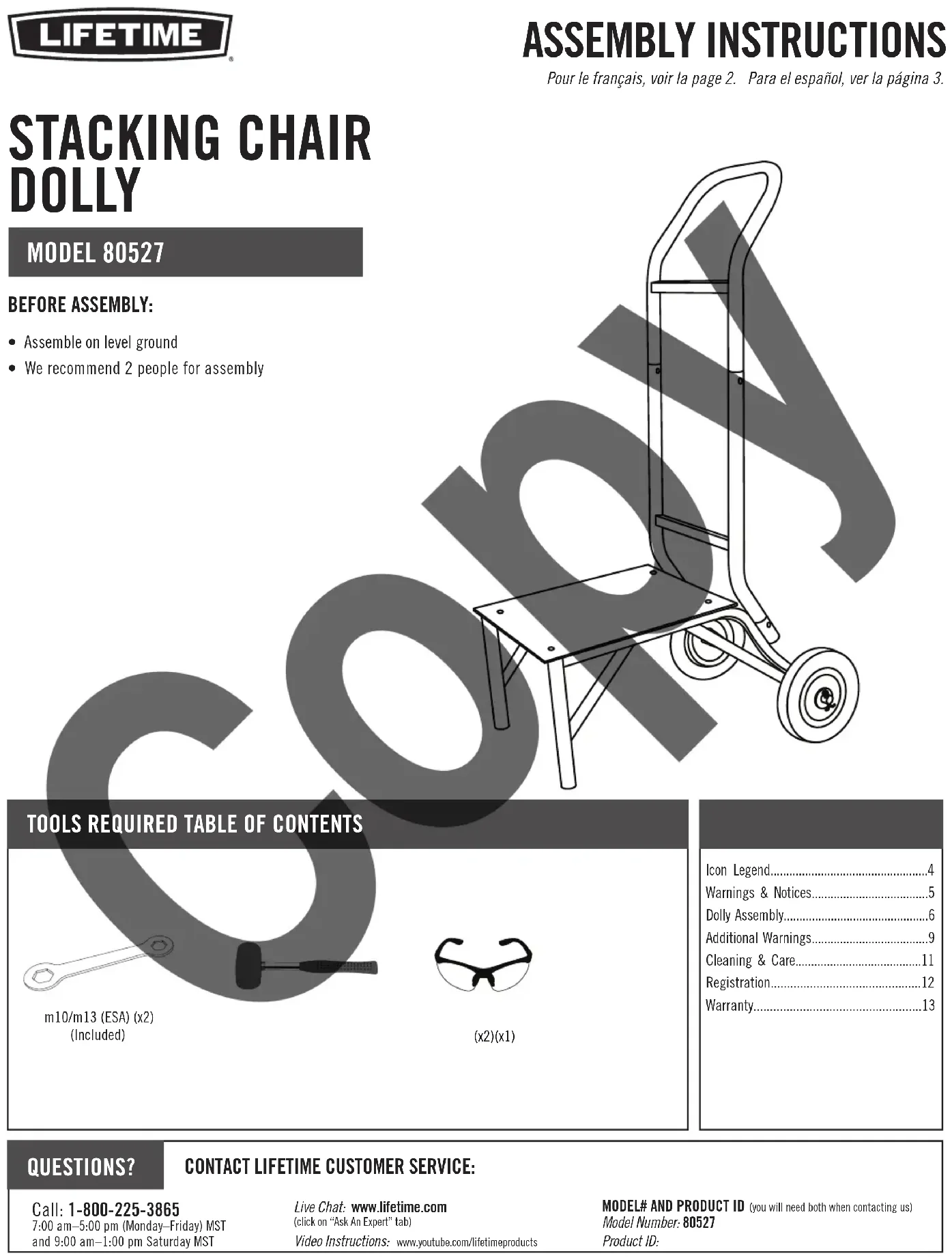 Retrouvez gratuitement la notice de l'appareil Dolly 80527 Lifetime au format PDF.