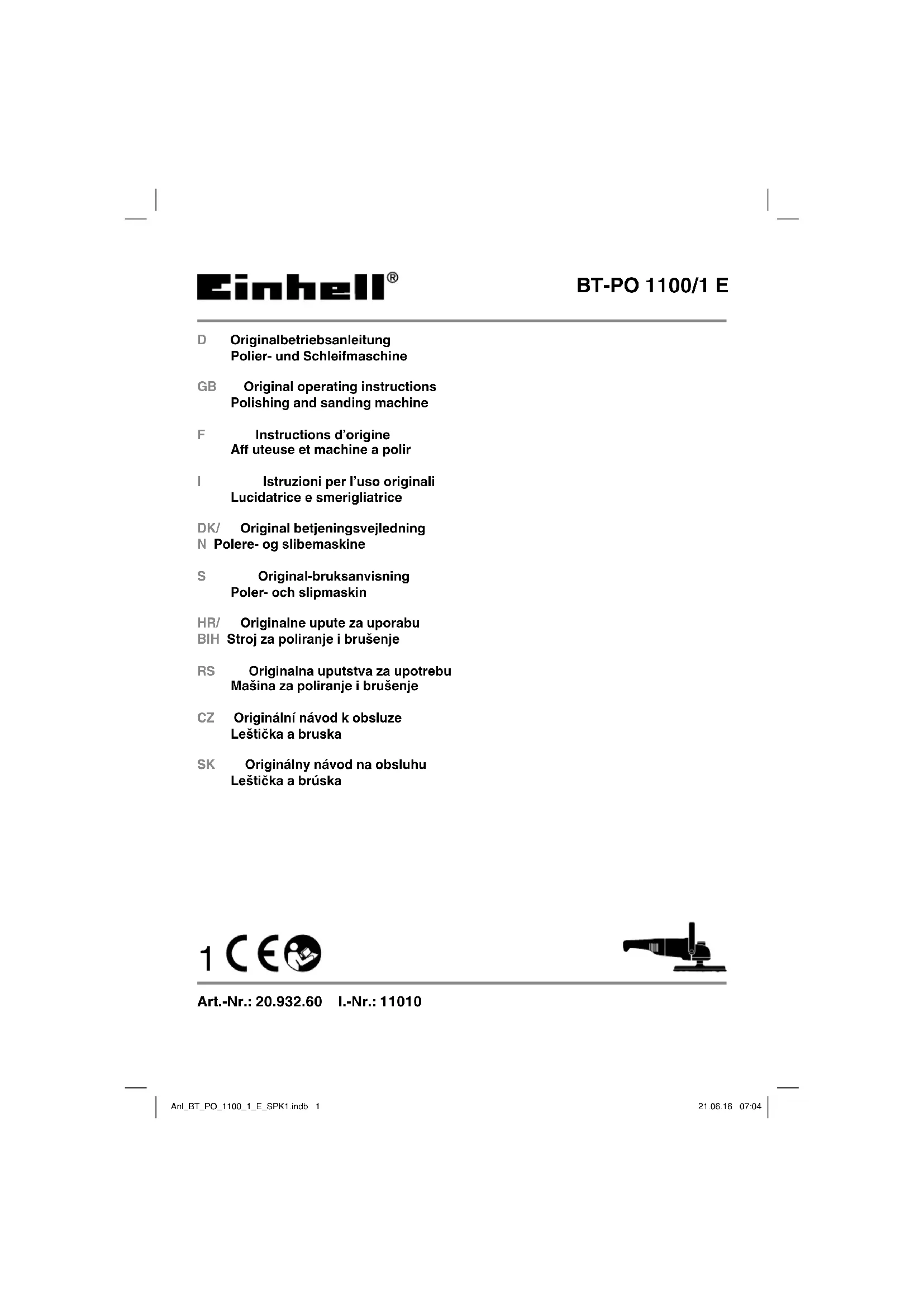 BT-PO 1100 - Polisseuse EINHELL - Notice d'utilisation et mode d'emploi gratuit