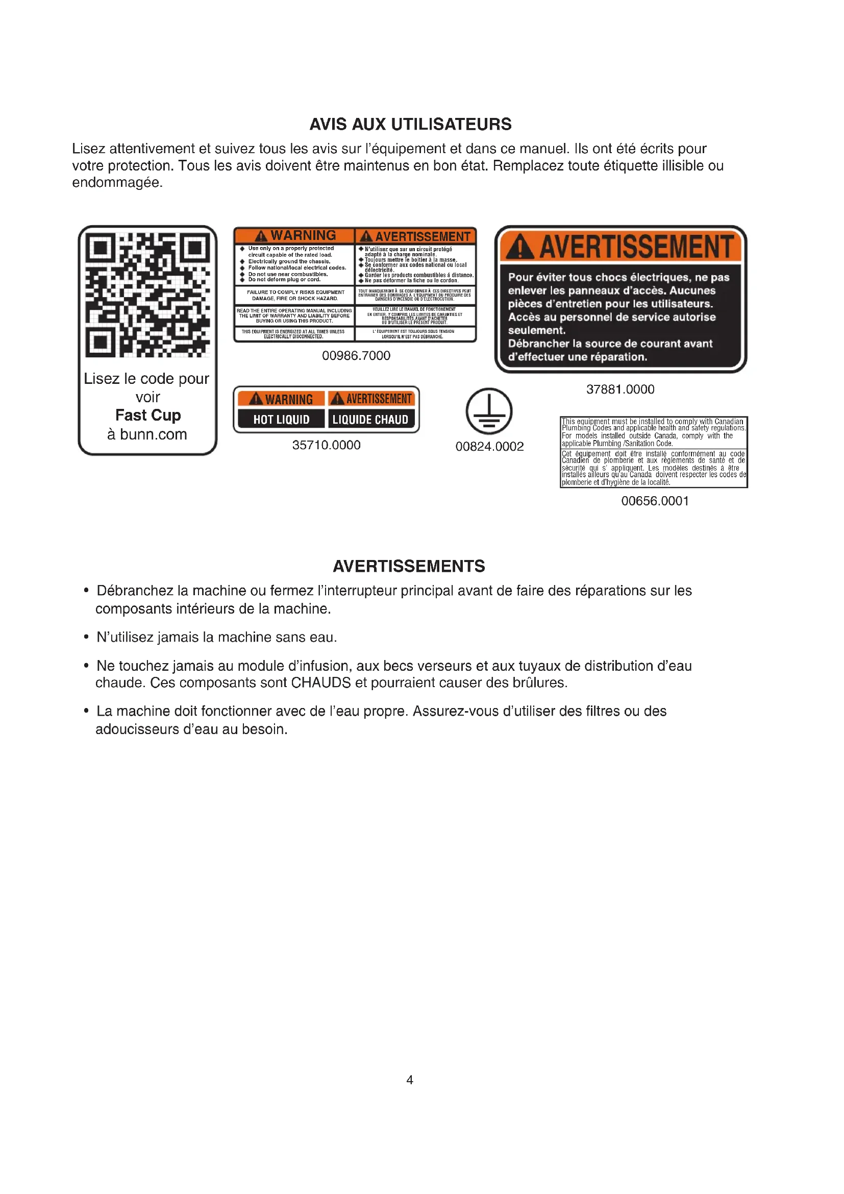AVERTISSEMENTS Lisez le code pour voir Fast Cup à bunn.com5