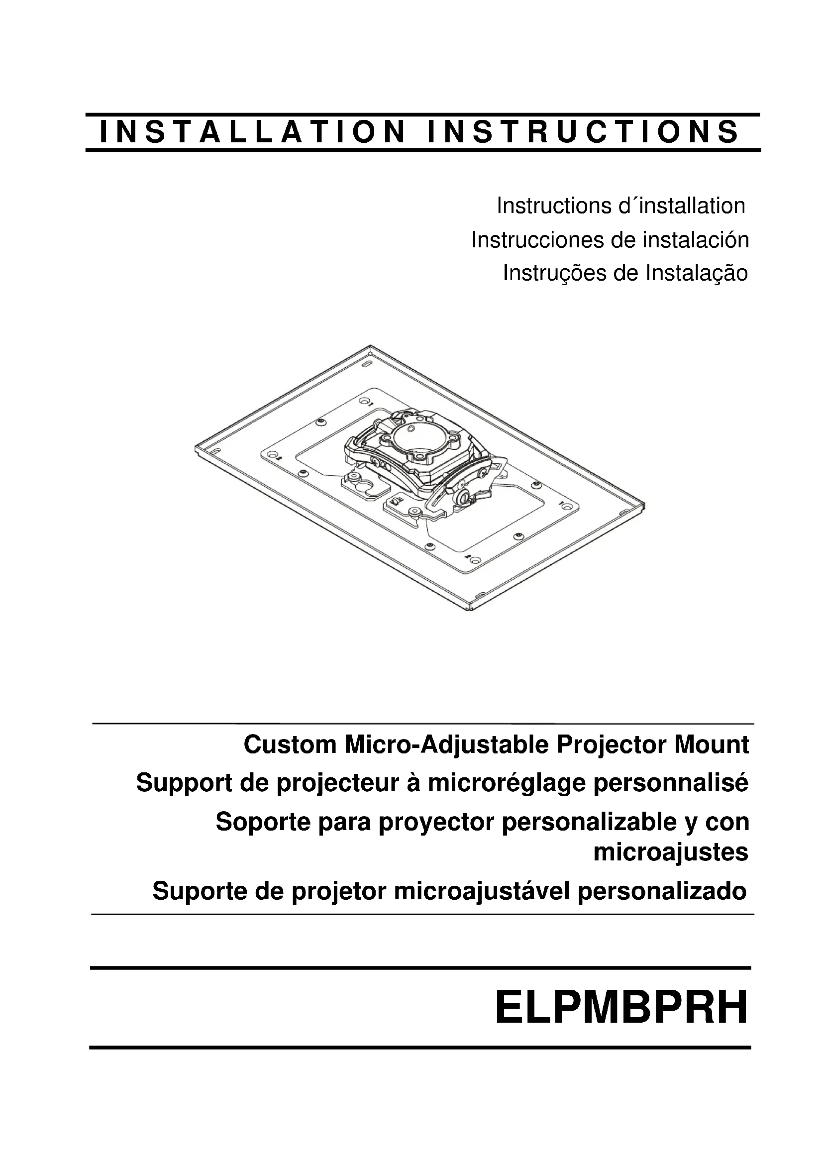 (Exemple de projecteur)Fabriqué par : Milestone AV Technologies Adresse : 6436 City West Parkway, Eden Prairie, MN 55344 Téléphone : 800.582.6480 Télécopieur : 877.894.6918 Courriel : info@milestone.com (Assistance technique de 7h00 à 19h00 HNC) www.milestone.com 8800-002778 Rév01 09/15 Instructions d'installation Distribué par : Epson America, Inc. 3840 Kilroy Airport Way Long Beach, CA 90806