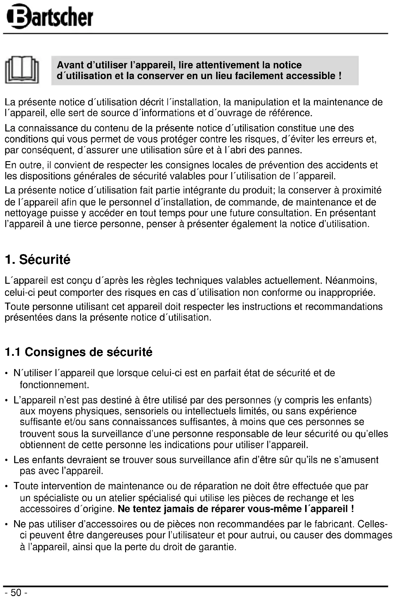 Retrouvez gratuitement la notice de l'appareil GHU 4110 BARTSCHER au format PDF.
