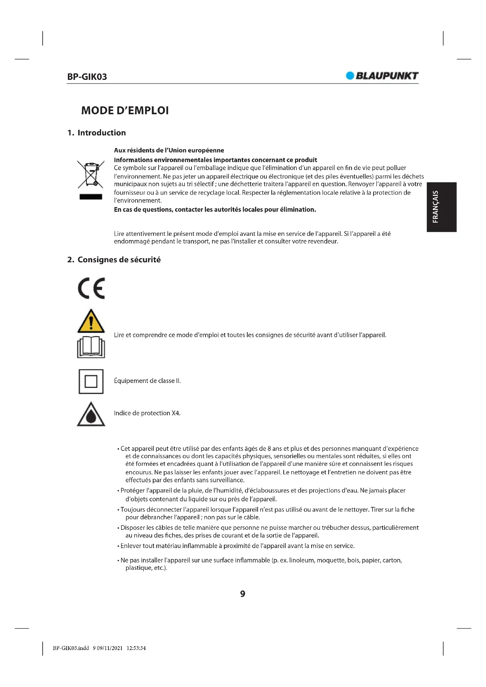 - Garder ce mode d’emploi pour toute référence ultérieure. BP-GIK03.indd 10 09/11/2021 12:53:35BP-GIK03