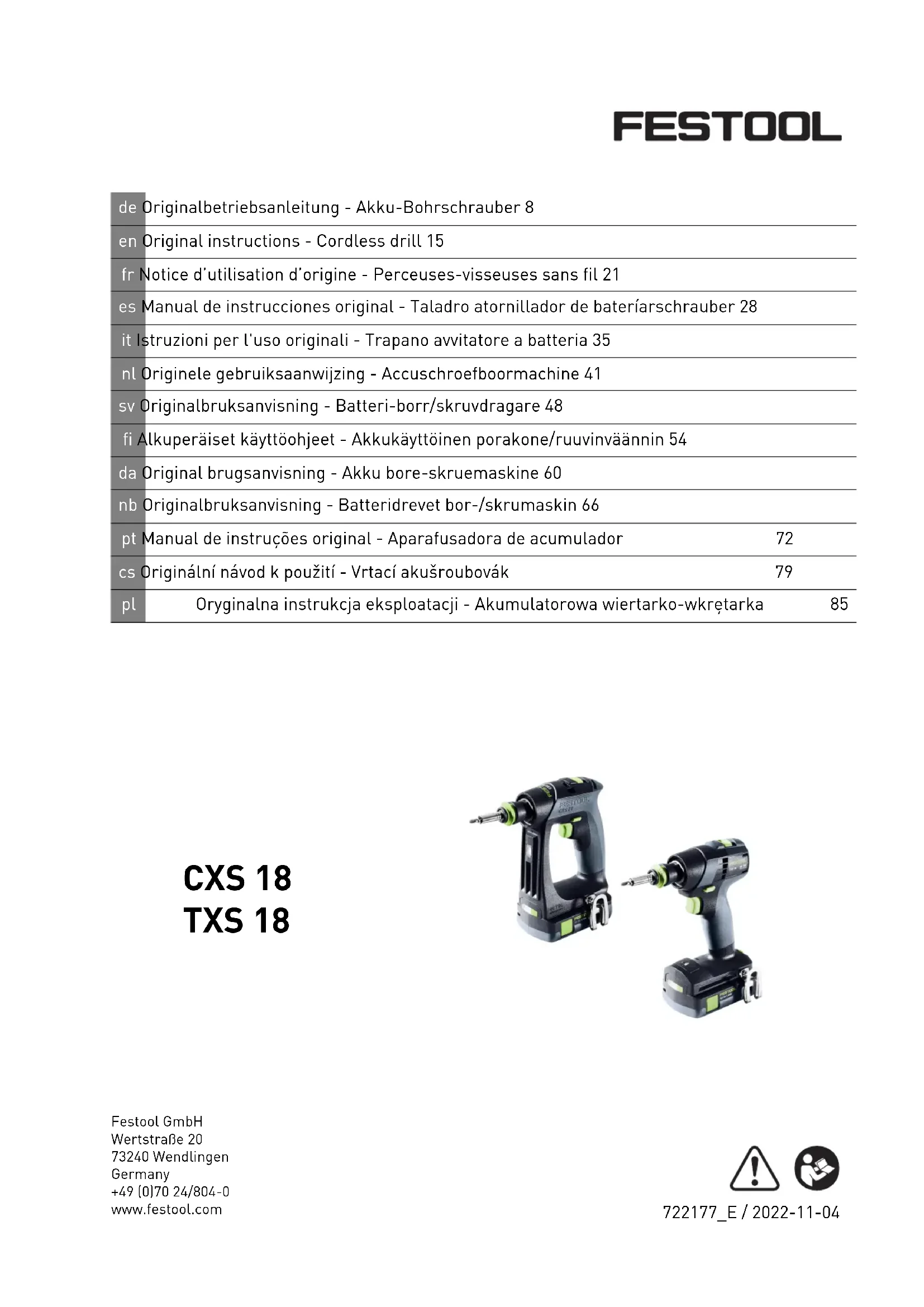 Téléchargez la notice de votre Perceuse au format PDF gratuitement ! Retrouvez votre notice TXS 18 - FESTOOL et reprennez votre appareil électronique en main. Sur cette page sont publiés tous les documents nécessaires à l'utilisation de votre appareil TXS 18 de la marque FESTOOL.
