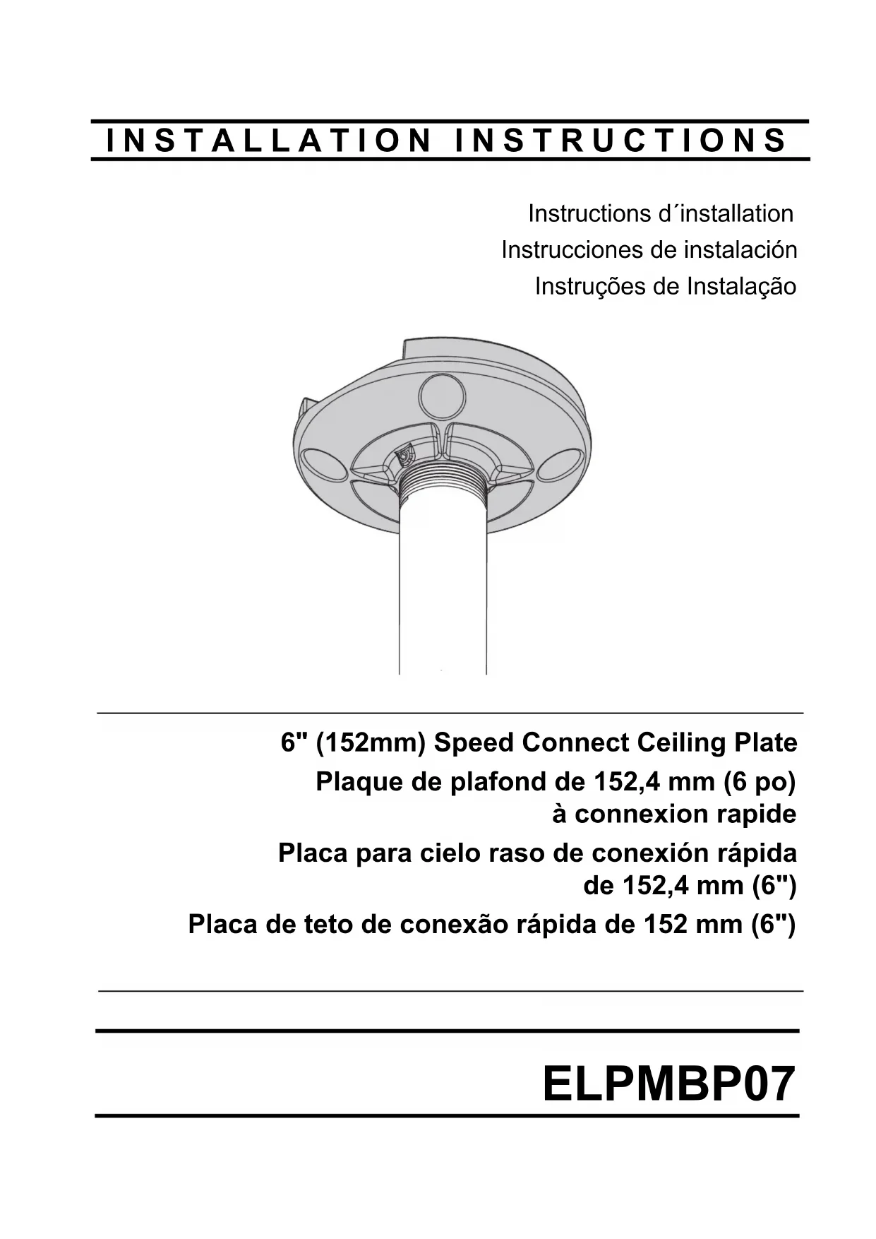capacité pondérale peut entraîner des blessures corporelles graves ou endommager l'équipement! Il incombe à l'installateur de s'assurer que le poids combiné de tous les composants attachés à la plaque ELPMBP07 n'excède pas 227 kg (500 lb).