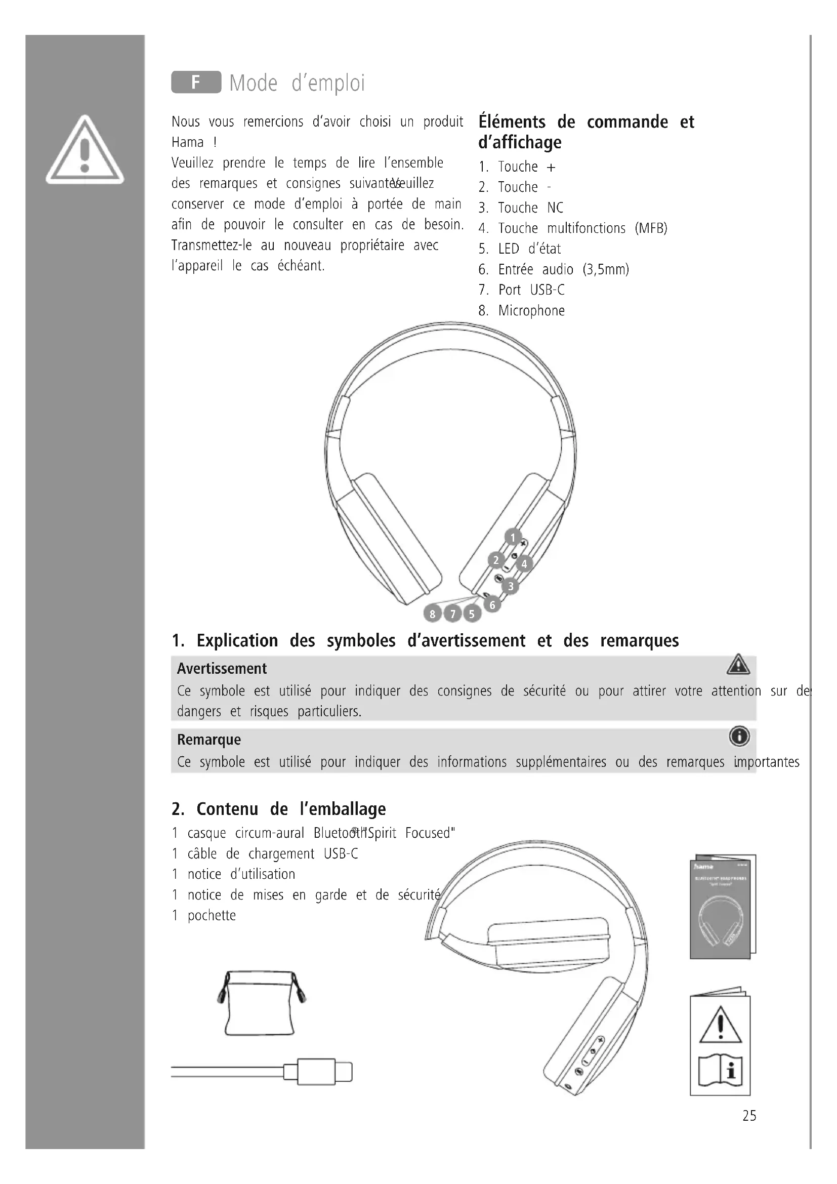 Spirit Focused 00184160 - Casque HAMA - Notice d'utilisation et mode d'emploi gratuit