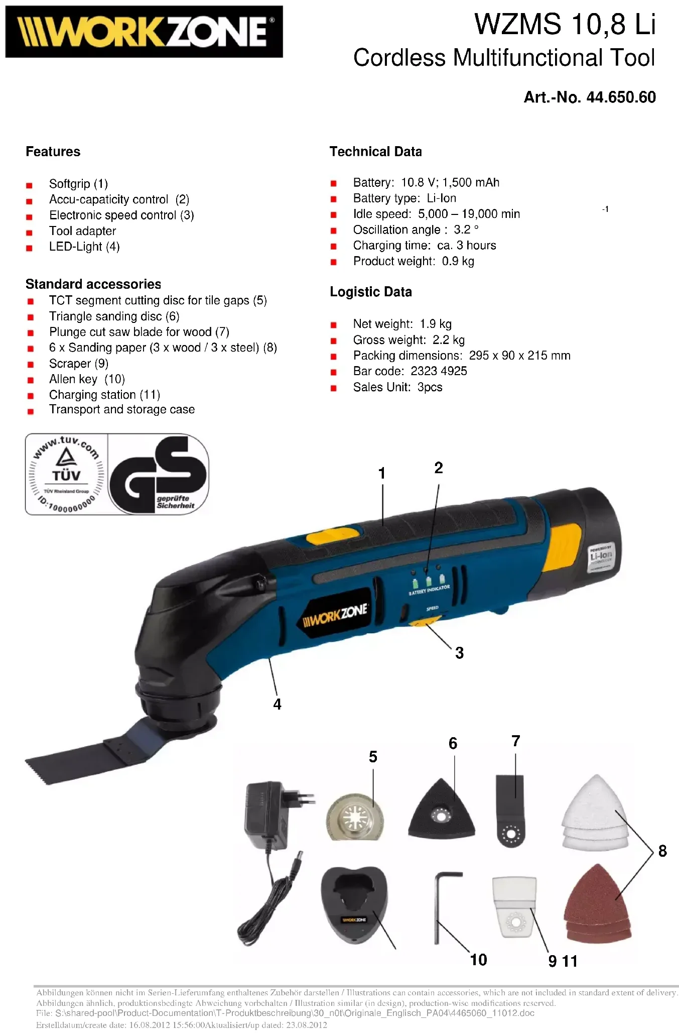 Retrouvez gratuitement la notice de l'appareil WZMS 10 8 Li Workzone au format PDF.