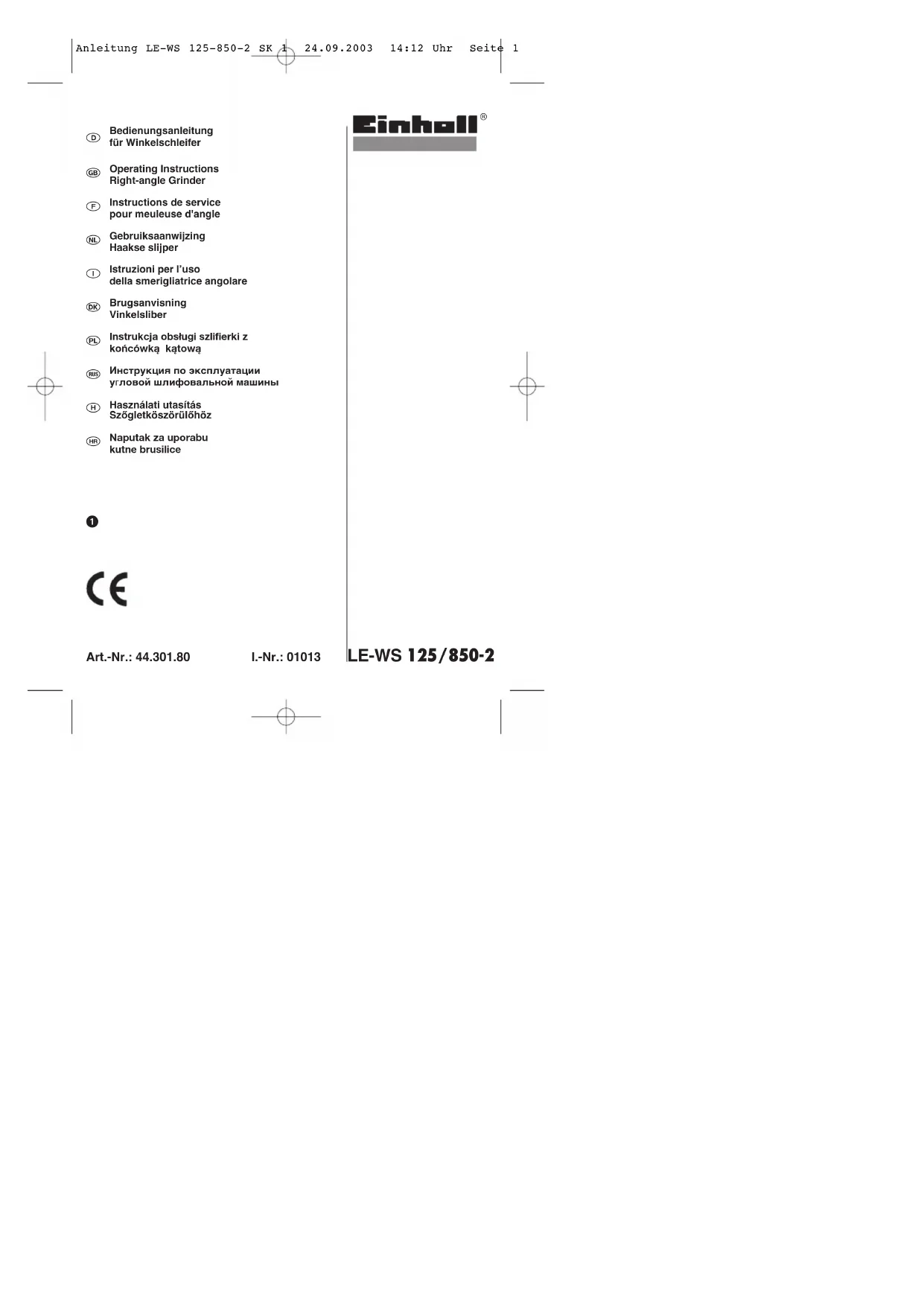 Retrouvez gratuitement la notice de l'appareil LE-WS 125 EINHELL au format PDF.