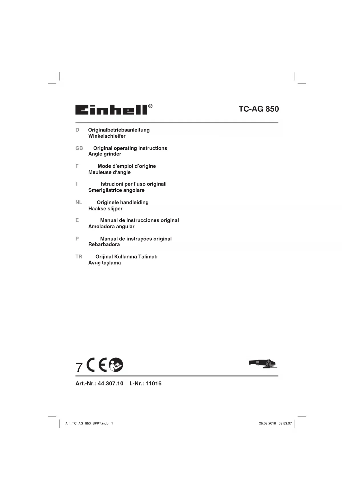 Retrouvez gratuitement la notice de l'appareil TC-AG 850 EINHELL au format PDF.