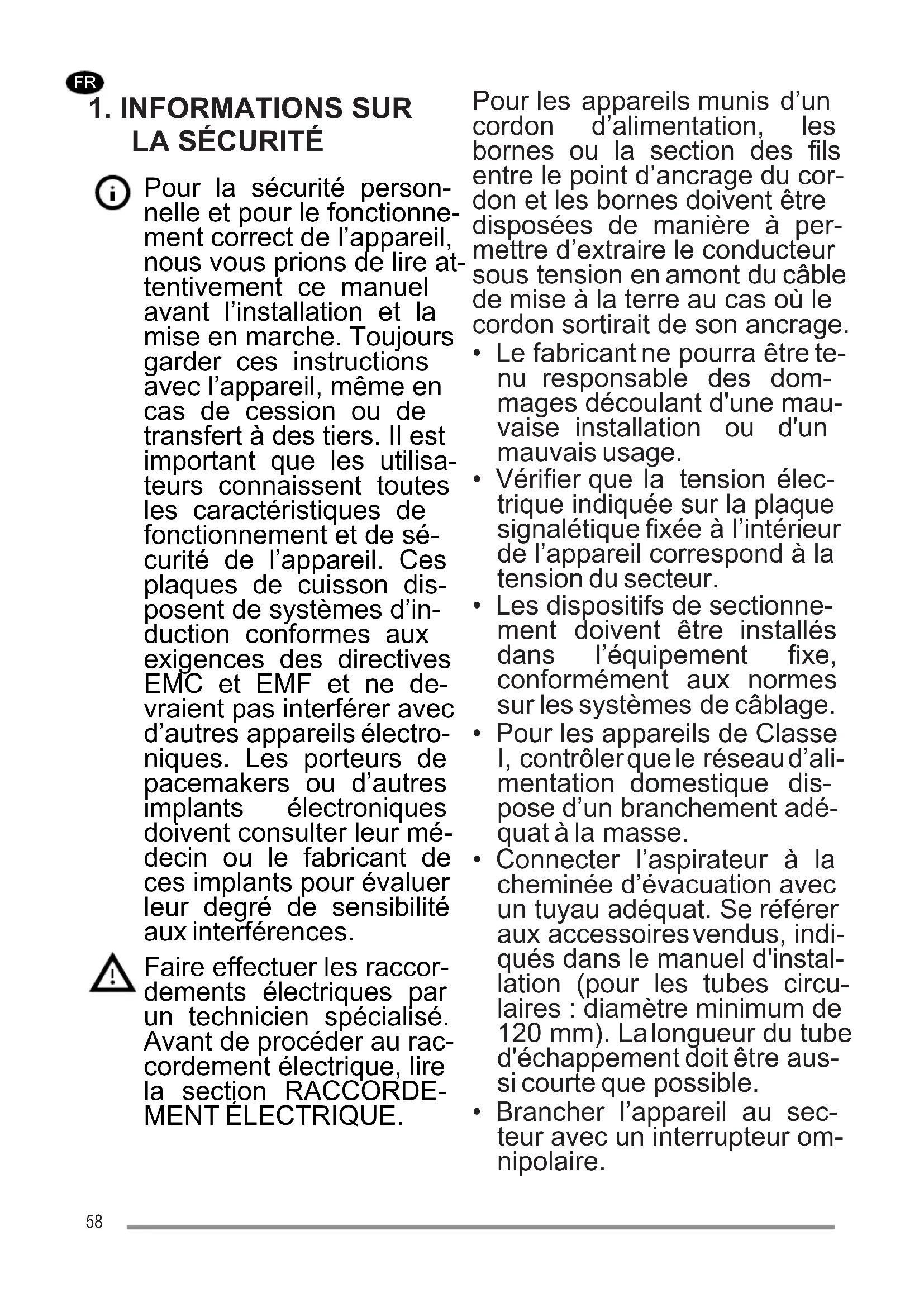 - Brancher l’appareil au sec- teur avec un interrupteur om- nipolaire. 58• Respecter impérativement toutes les normes concernant l’évacuation de l’air.