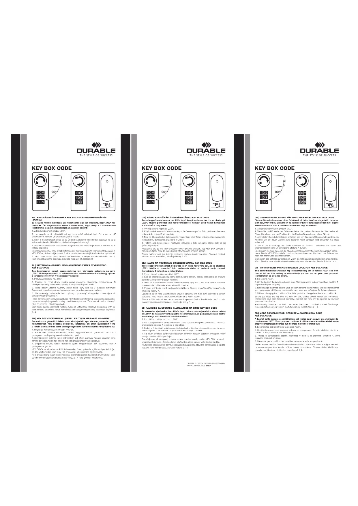 MODE D'EMPLOI KEY BOX CODE 54 Durable