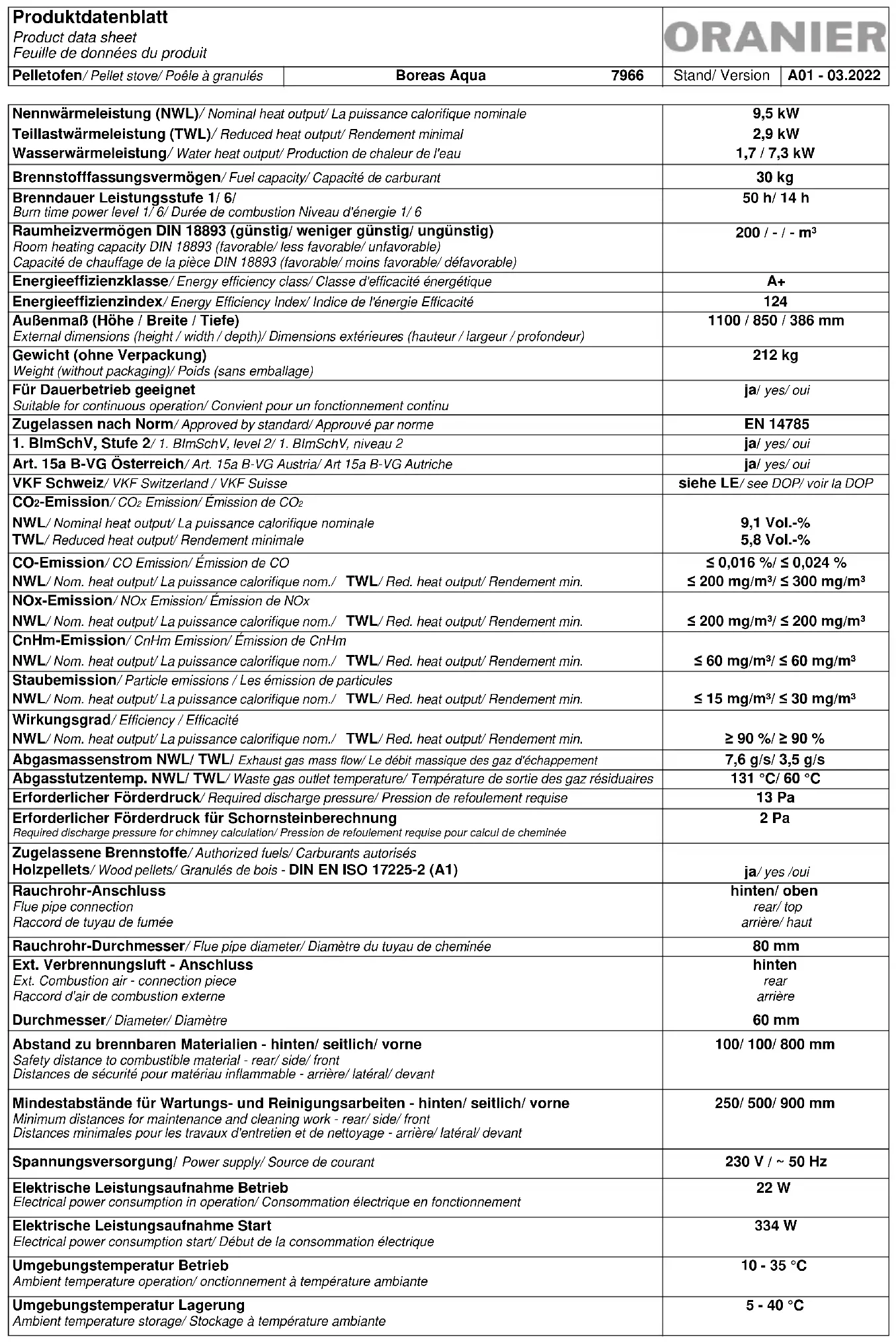 Produktdatenblatt Product data sheet Feuille de données du produit Pelletofen/ Pellet stove/ Poêle à granulés Stand/ Version A01 - 03.2022