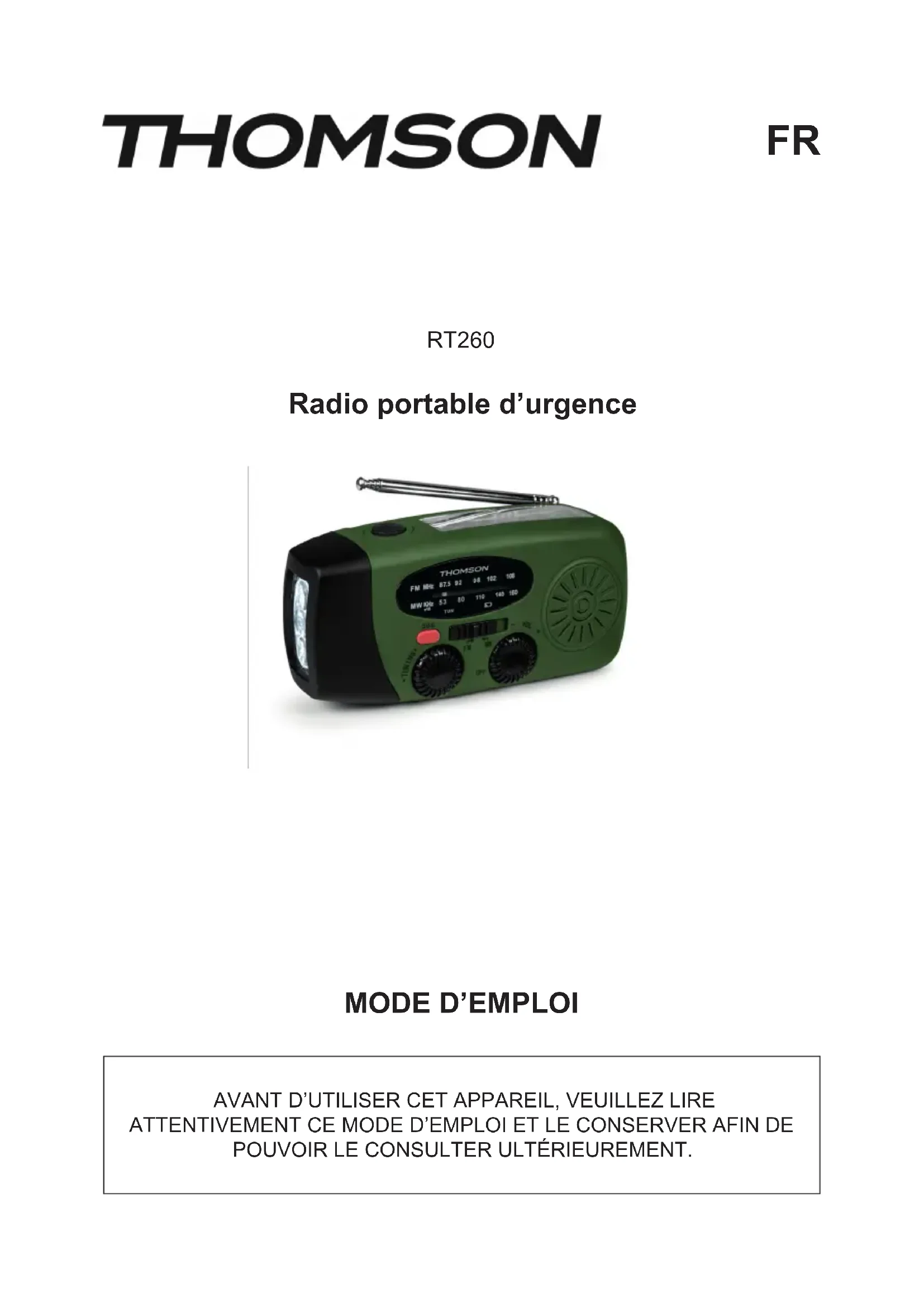 Téléchargez la notice de votre Radio au format PDF gratuitement ! Retrouvez votre notice RT260 - THOMSON et reprennez votre appareil électronique en main. Sur cette page sont publiés tous les documents nécessaires à l'utilisation de votre appareil RT260 de la marque THOMSON.