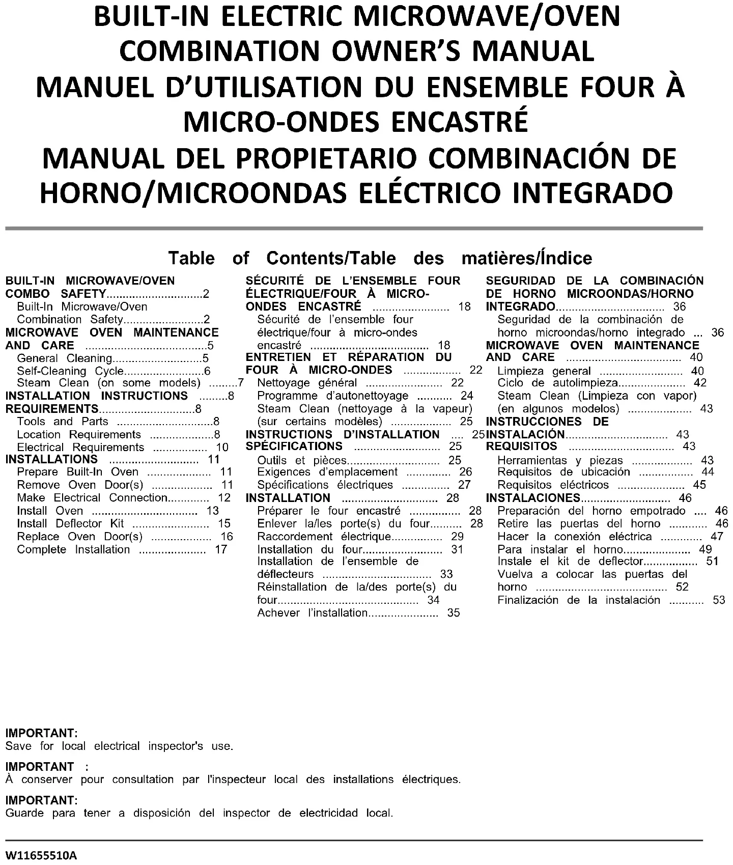 Water in container should be hot. If you need Assistance or Service: Please refer to the Quick Start Guide for contact information, or contact the dealer from whom you purchased your built-in electric ovens and microwave ovens.18 SÉCURITÉ DE L’ENSEMBLE FOUR ÉLECTRIQUE/FOUR À MICRO-ONDES ENCASTRÉ Votre sécurité et celle des autres sont très importantes. Nous donnons de nombreux messages de sécurité importants dans ce manuel et sur votre appareil. Assurez-vous de toujours lire tous les messages de sécurité et de vous y conformer. Voici le symbole d’alerte de sécurité. Ce symbole d’alerte de sécurité vous signale les dangers potentiels de décès et de blessures graves. Tous les messages de sécurité suivront le symbole d’alerte de sécurité et le mot « DANGER » ou « AVERTISSEMENT ». Ces mots signifient : DANGER Risque possible de décès ou de blessure grave si vous ne suivez pas immédiatement les instructions. AVERTISSEMENT Risque possible de décès ou de blessure grave si vous ne suivez pas les instructions. Tous les messages de sécurité vous diront quel est le danger potentiel, comment réduire le risque de blessure et ce qui peut se produire en cas de non-respect des instructions.