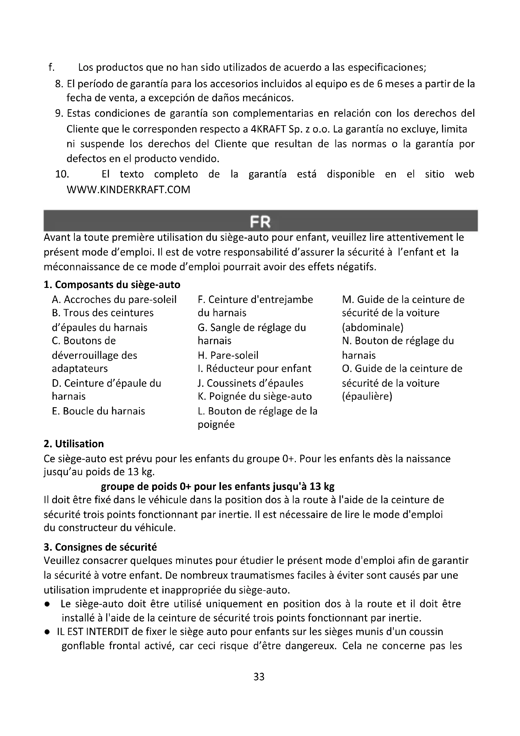 1. Tous les produits de Kinderkraft sont couverts par la garantie de 24 mois. La période de