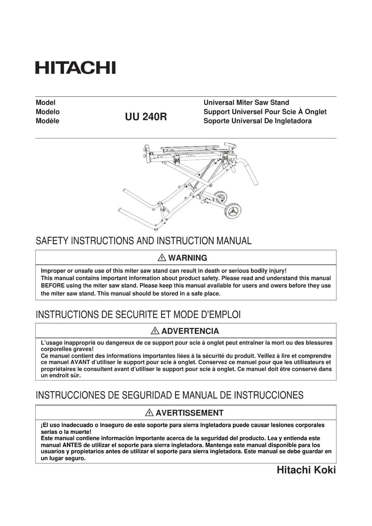 UU240R - Scie HITACHI - Notice d'utilisation et mode d'emploi gratuit