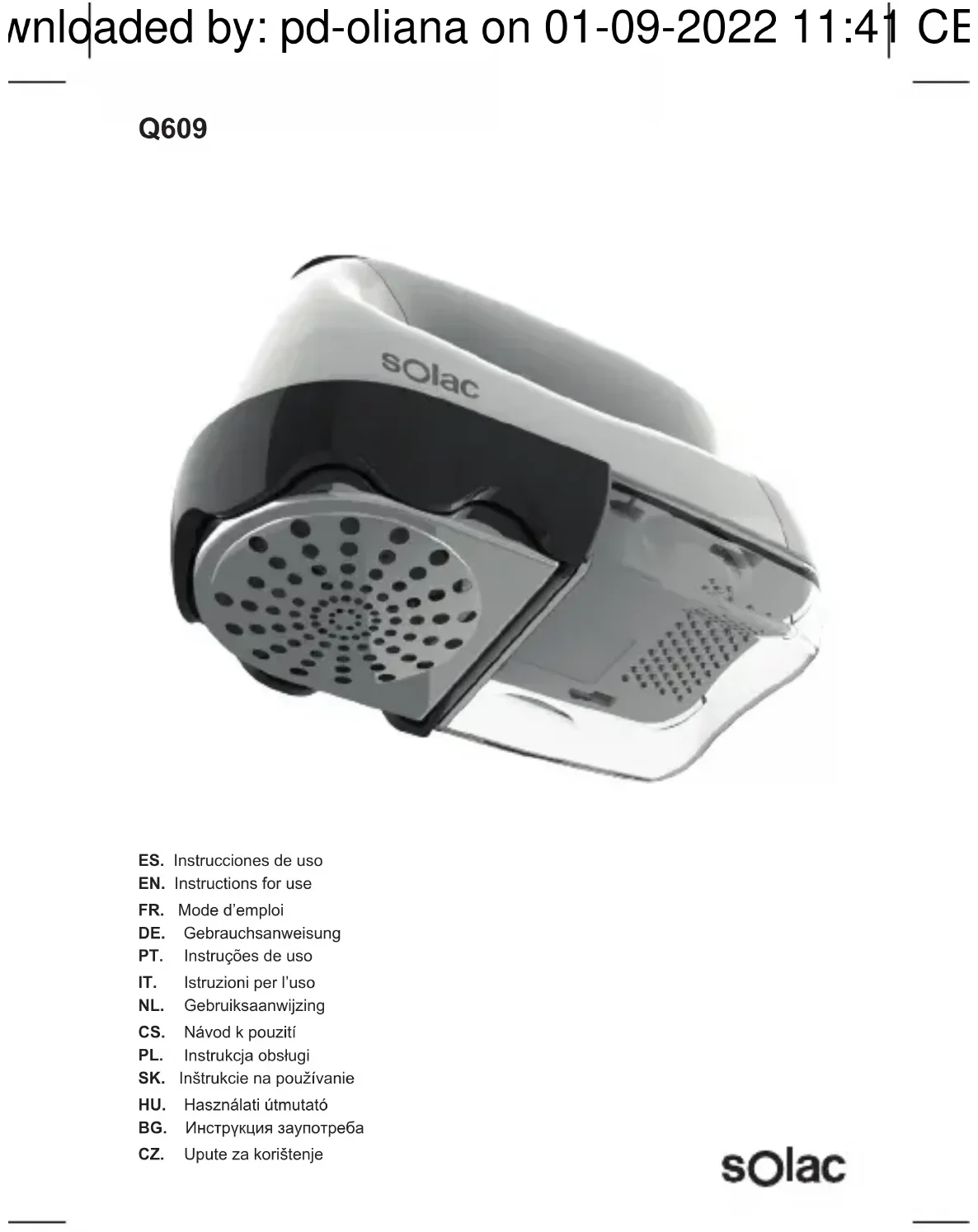 Retrouvez gratuitement la notice de l'appareil Q609 SOLAC au format PDF.