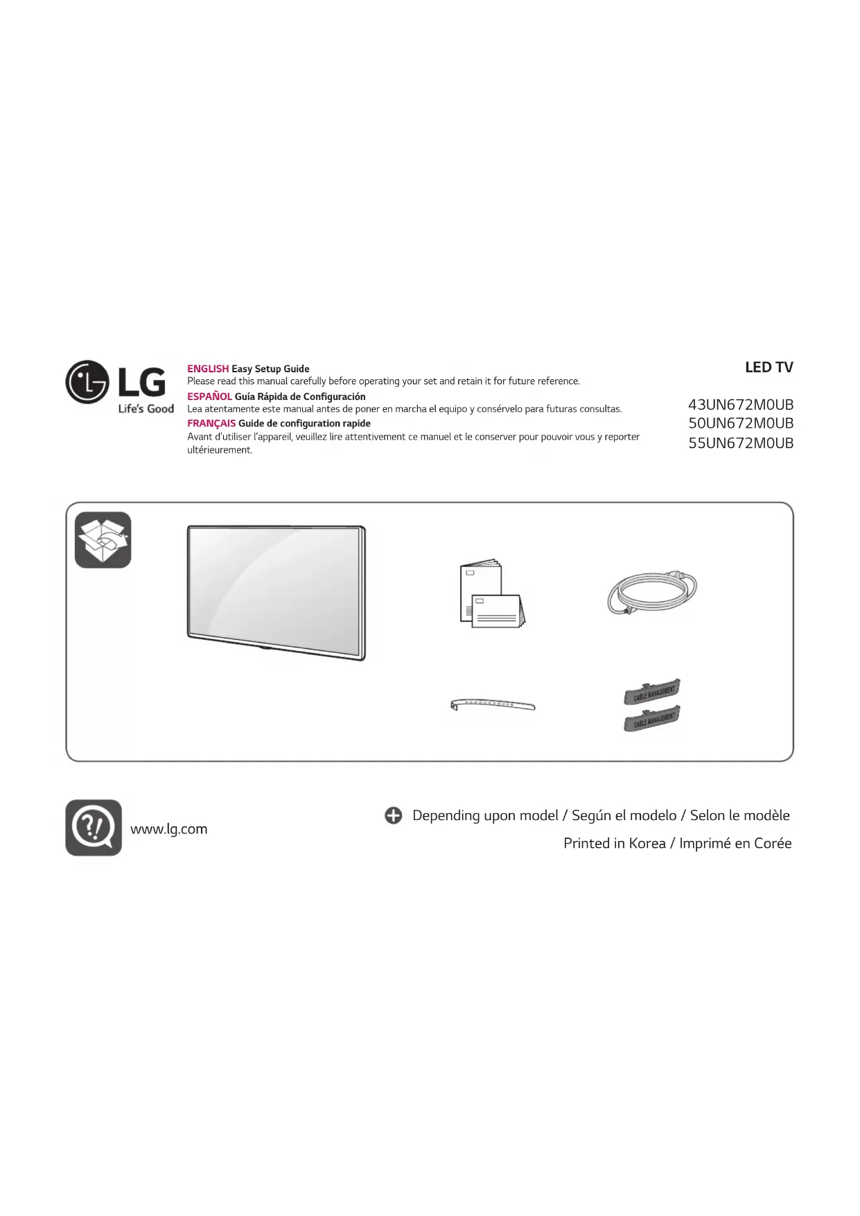 Retrouvez gratuitement la notice de l'appareil 43UN672M0UB LG au format PDF.