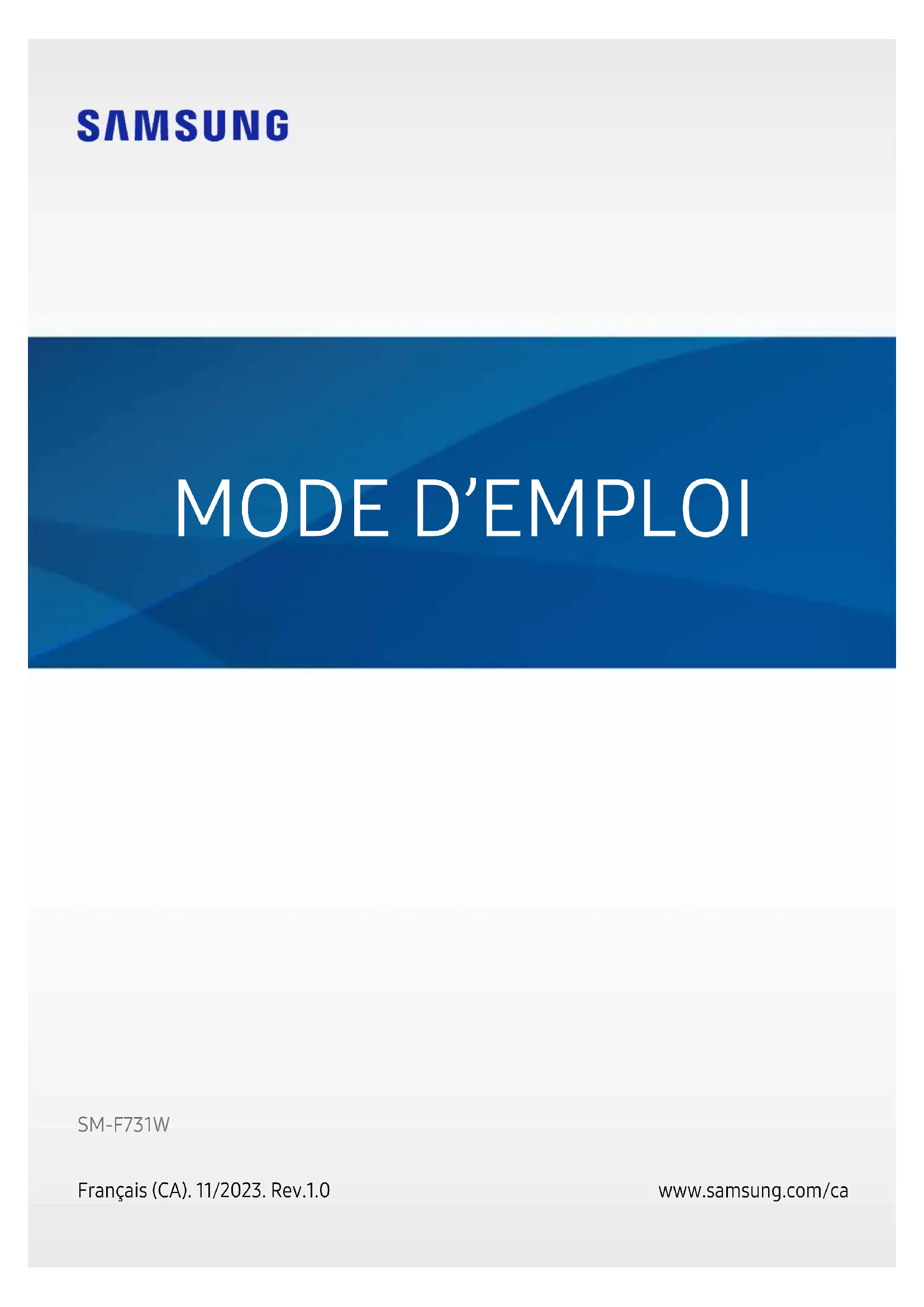 Français (CA). 11/2023. Rev.1.0 SM-F731W2 Table des matières Démarrage 6 Présentation de l’appareil et de ses fonctions 11 Charger la pile 16 Cartes nano-SIM et eSIM 18 Allumer et éteindre l’appareil 19 Configuration initiale Applications et fonctionnalités 20 Introduction 21 Compte Samsung 22 Présentation de l’écran 35 Panneau de notifications 37 Saisir du texte 38 Extraire du texte 39 Installer ou désinstaller des applications 41 Téléphone 43 Contacts 45 Messages 47 Fonction multifenêtre 49 Bixby 51 Bixby Vision 52 Internet 53 Samsung Kids 53 Health 55 Notes 55 Samsung Members 55 Samsung Global Goals 56 Samsung TV Plus 56 Galaxy Wearable 56 Calendrier 57 Reminder 58 Mes fichiers 58 Horloge 58 Calculatrice 59 Gaming Hub 60 Game Booster 61 SmartThings 61 Smart View 62 Music Share 64 Lien avec Windows 65 Applications Google 66 Mode Flex (Utiliser l’appareil plié) 68 Appareil photo 88 Galerie 93 Zone RA 98 Dictaphone 100 Wallet 102 Pay 103 Partager du contenu 105 Capturer et enregistrer l’écran 107 Transférer des données depuis votre ancien appareil (Smart Switch)Table des matières