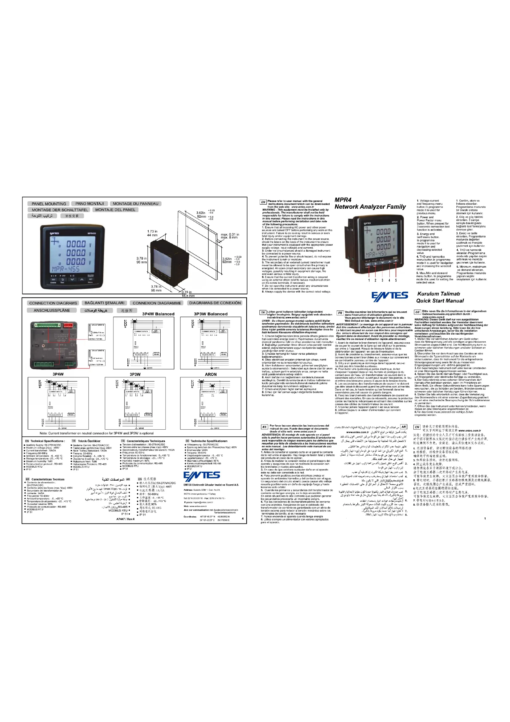 | Caractéristiques techniques | Modèle : ENTES MPR-47S-96, Type : Équipement de mesure, Plage de mesure : 0-1000 V, Précision : ±0,5 %, Fréquence : 50/60 Hz |