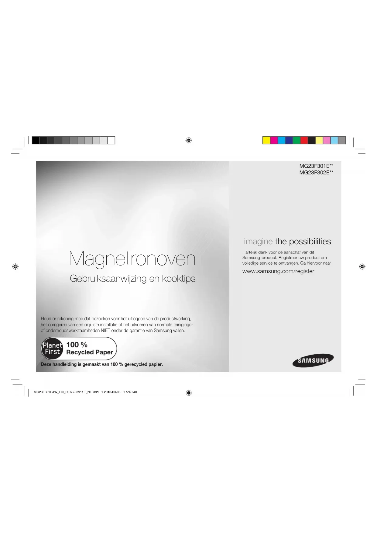 ne doivent pas être réchaués dans des récipients fermés car ils risquent d'exploser. MG23F301EAW_EN_DE68-03911E_FR.indd 2 2013-03-08 5:35:153 FRANÇAIS Cet appareil est destiné à une utilisation domestique uniquement.