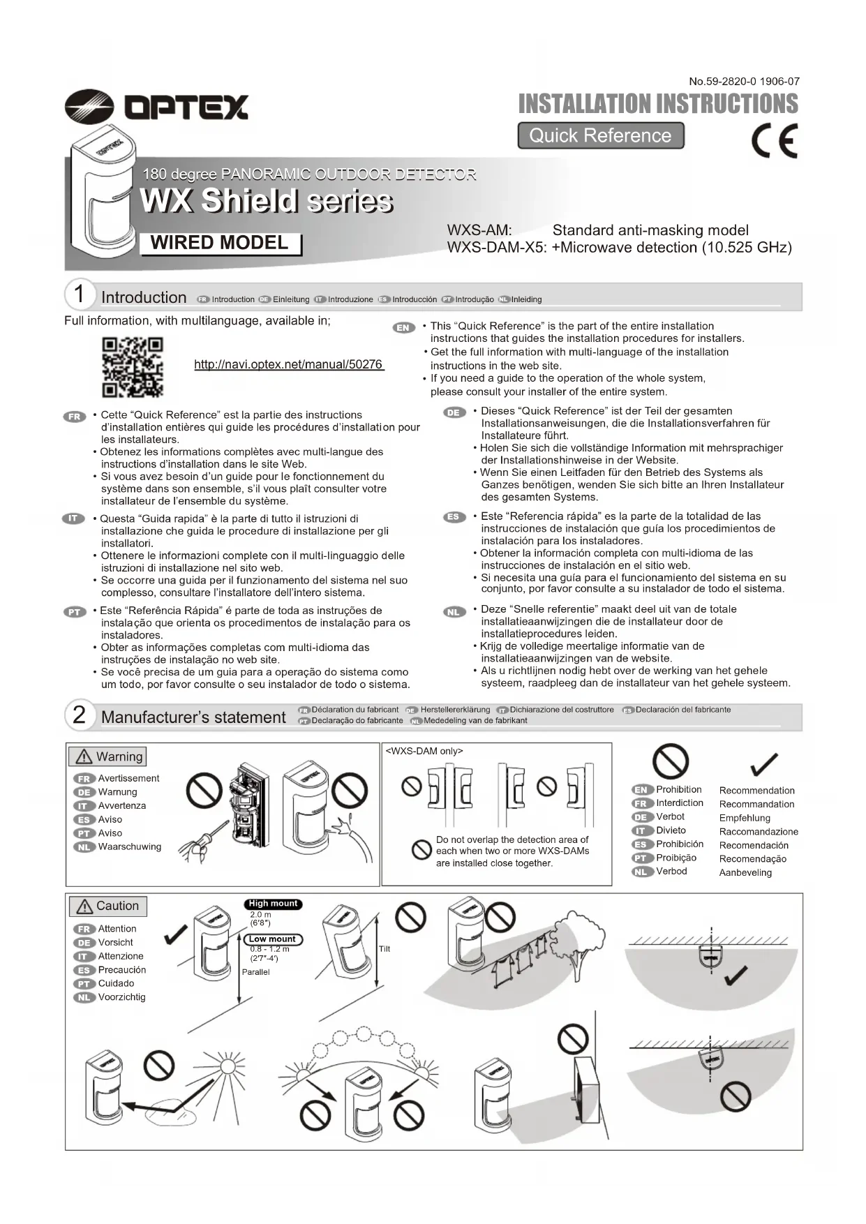 Retrouvez gratuitement la notice de l'appareil WXS-AM OPTEX au format PDF.